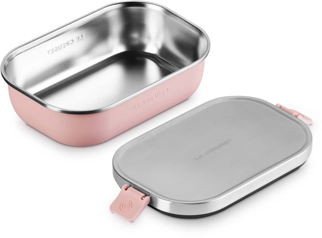 Die Le Creuset Lunchbox 900 ml aus der On The Go Collection ist ein praktischer Begleiter für Mahlzeiten unterwegs. Die Box eignet sich ideal zum Mitnehmen, Aufbewahren und Lagern von Speisen. Dank des robusten Edelstahlgehäuses ist sie langlebig, hygienisch und leicht zu reinigen. Die rechteckige Form bietet ausreichend Platz für Sandwiches, Salate oder komplette Mahlzeiten und verbindet Funktionalität mit ikonischem Design.