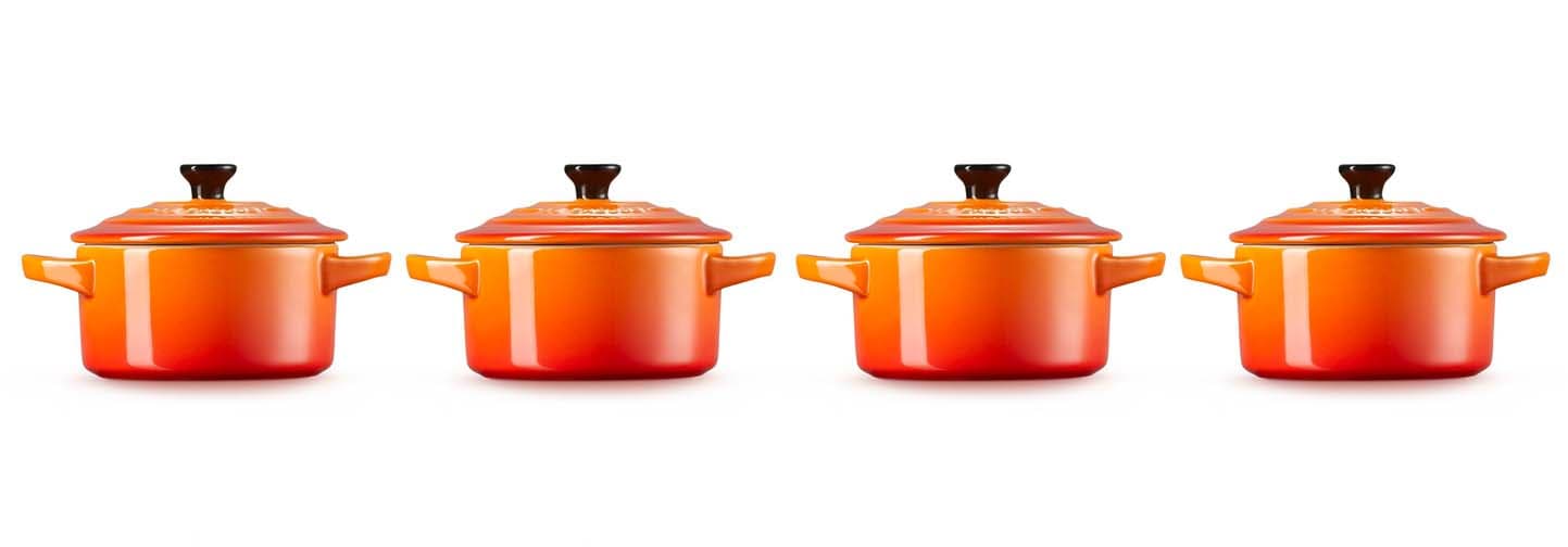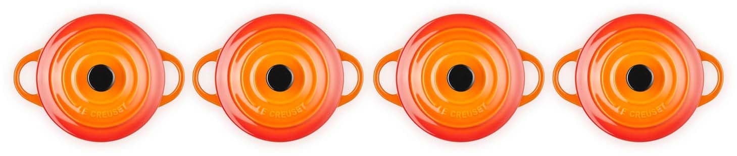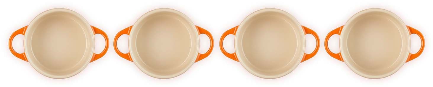 Das Mini-Cocottes 4er-Set von Le Creuset in der Farbe Ofenrot ist ideal zum Backen und Servieren einzelner Portionen, Beilagen oder Desserts. Die kleinen Formen eignen sich ebenso hervorragend für Dips, Gewürze und Knabbereien. Der praktische Deckel hält Snacks frisch und ermöglicht das Erwärmen von Saucen in der Mikrowelle – perfekt für vielseitige Anwendungen in der Küche und eine stilvolle Präsentation direkt am Tisch.