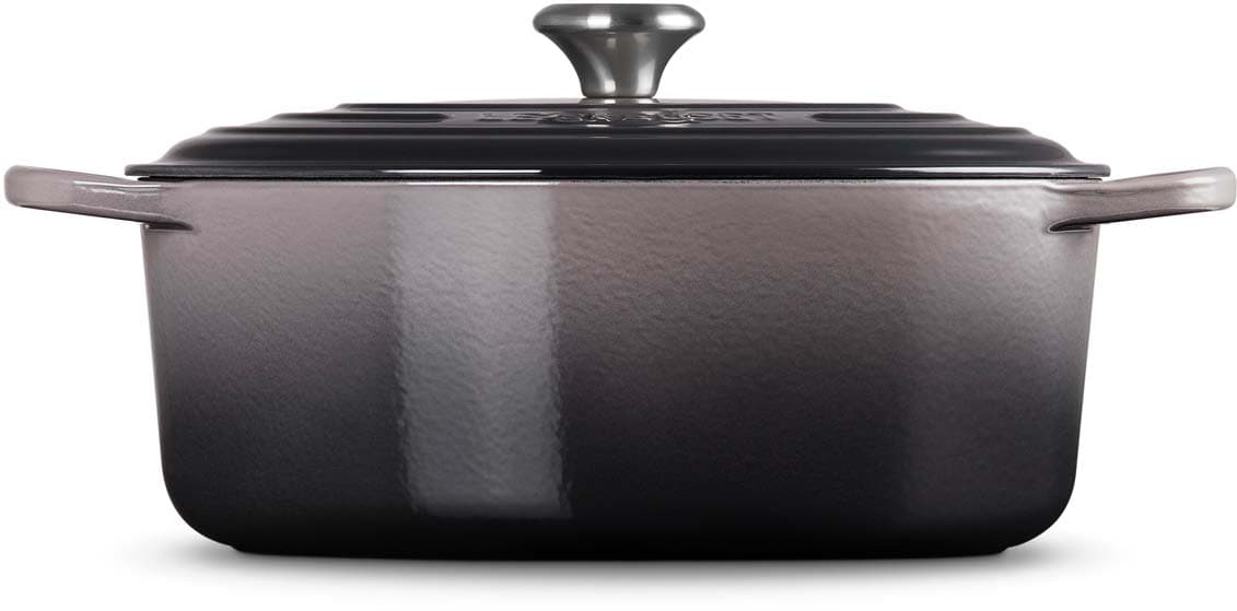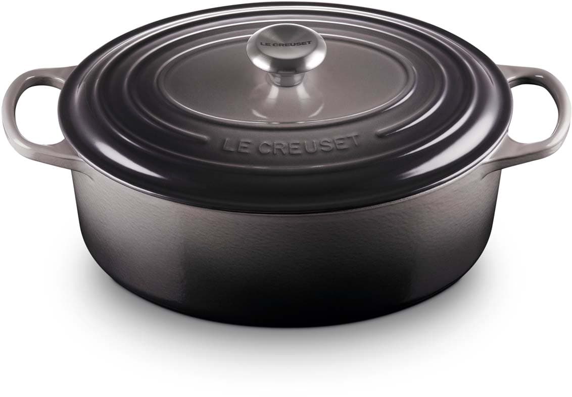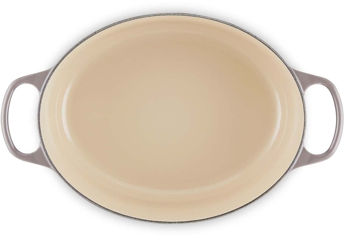 Der ovale gusseiserne Bräter Signature von Le Creuset mit 31 cm Durchmesser eignet sich ideal für größere Fleischstücke und ganze Braten. Versuchen Sie zum Beispiel, ein ganzes Hähnchen mit aufgesetztem Deckel zu garen – das Fleisch wird wunderbar saftig, fällt vom Knochen und der Ofen bleibt sauber. Der ovale Bräter ist genauso vielseitig wie sein rundes Pendant. Er bietet ausreichend Platz, um eine ganze Lammkeule zuzubereiten, und ist gleichzeitig schmal genug, um im Ofen zusätzlichen Raum für Beilagen zu lassen.