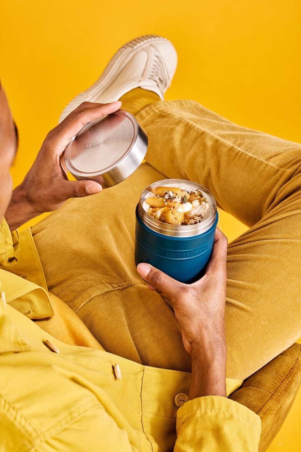 Der Le Creuset Thermobehälter 500 ml aus der On The Go Collection ist ein praktischer Begleiter für warme Mahlzeiten unterwegs. Gefertigt aus hochwertigem Edelstahl hält er Speisen dank doppelwandiger Isolierung lange warm. Der dicht schließende Deckel sorgt für auslaufsicheren Transport, während die große Öffnung das Befüllen, Essen und Reinigen erleichtert. Robust, wiederverwendbar und ideal für Arbeit, Schule oder Freizeit.