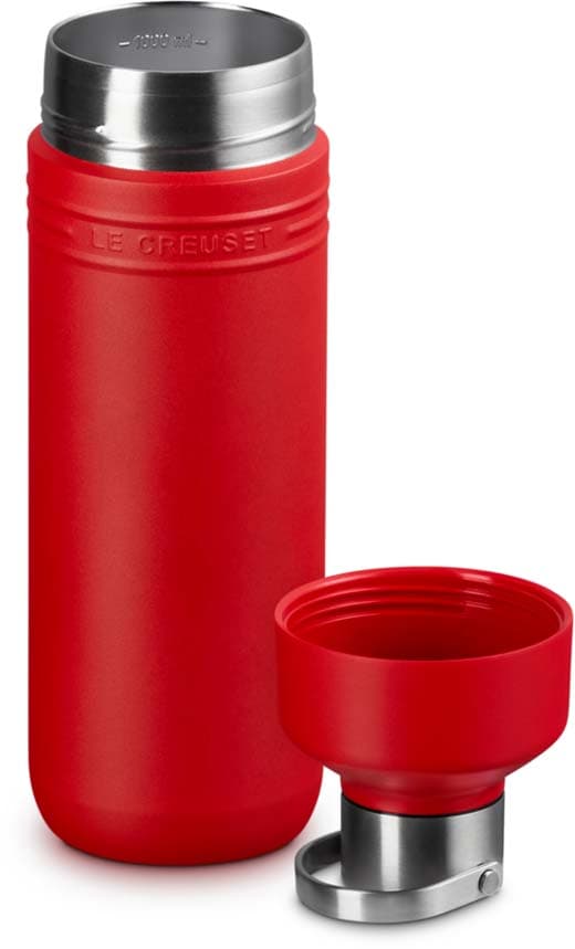 Mit großzügigem Fassungsvermögen ist die Le Creuset Trinkflasche 1l aus der On The Go Collection ideal für lange Tage unterwegs. Die isolierte Edelstahlflasche hält Getränke dank doppelwandiger Vakuumisolierung über Stunden heiß oder kalt. Zwei praktische Öffnungen erleichtern Trinken, Befüllen und Reinigen, während der dicht schließende Deckel zuverlässig vor Auslaufen schützt. Robust, hygienisch und perfekt für Arbeit, Sport oder Freizeit.