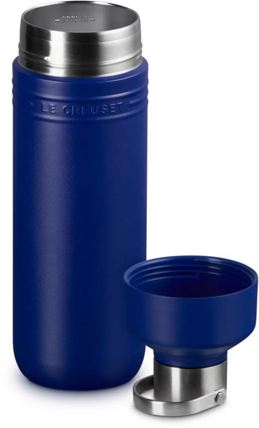 Mit großzügigem Fassungsvermögen ist die Le Creuset Trinkflasche 1l aus der On The Go Collection ideal für lange Tage unterwegs. Die isolierte Edelstahlflasche hält Getränke dank doppelwandiger Vakuumisolierung über Stunden heiß oder kalt. Zwei praktische Öffnungen erleichtern Trinken, Befüllen und Reinigen, während der dicht schließende Deckel zuverlässig vor Auslaufen schützt. Robust, hygienisch und perfekt für Arbeit, Sport oder Freizeit.