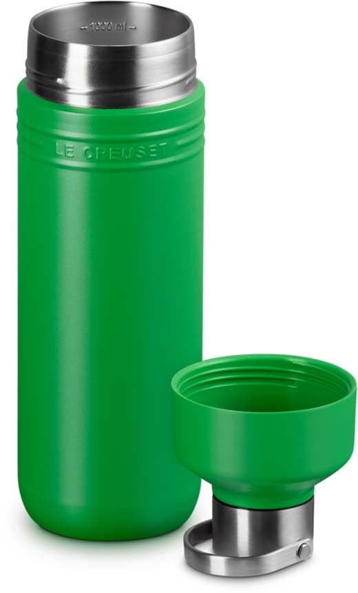 Mit großzügigem Fassungsvermögen ist die Le Creuset Trinkflasche 1l aus der On The Go Collection ideal für lange Tage unterwegs. Die isolierte Edelstahlflasche hält Getränke dank doppelwandiger Vakuumisolierung über Stunden heiß oder kalt. Zwei praktische Öffnungen erleichtern Trinken, Befüllen und Reinigen, während der dicht schließende Deckel zuverlässig vor Auslaufen schützt. Robust, hygienisch und perfekt für Arbeit, Sport oder Freizeit.