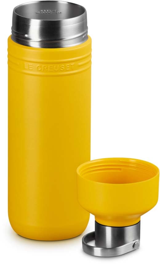 Mit großzügigem Fassungsvermögen ist die Le Creuset Trinkflasche 1l aus der On The Go Collection ideal für lange Tage unterwegs. Die isolierte Edelstahlflasche hält Getränke dank doppelwandiger Vakuumisolierung über Stunden heiß oder kalt. Zwei praktische Öffnungen erleichtern Trinken, Befüllen und Reinigen, während der dicht schließende Deckel zuverlässig vor Auslaufen schützt. Robust, hygienisch und perfekt für Arbeit, Sport oder Freizeit.