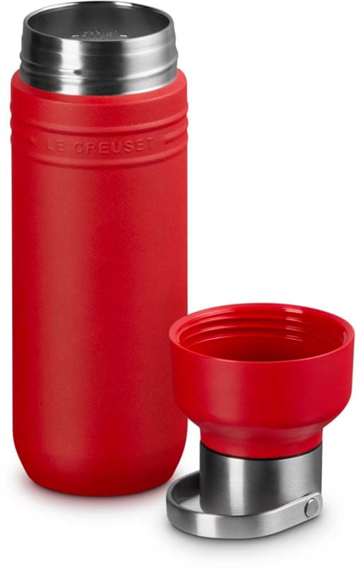 Die Le Creuset Trinkflasche 500 ml aus der On The Go Collection ist ein stilvoller Begleiter für unterwegs. Die isolierte Edelstahlflasche hält Getränke dank doppelwandiger Vakuumisolierung über Stunden heiß oder kalt. Zwei praktische Öffnungen erleichtern Trinken, Befüllen und Reinigen, während der dicht schließende Deckel zuverlässig vor Auslaufen schützt. Robust, hygienisch und ideal für Alltag, Arbeit oder Freizeit.