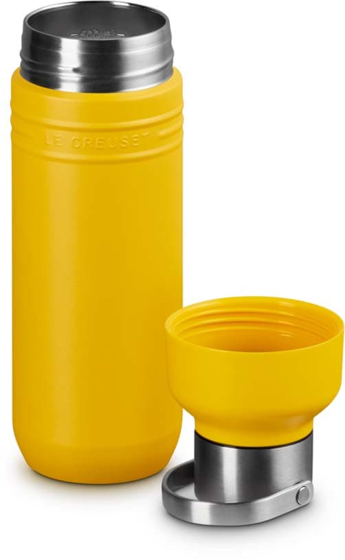 Die Le Creuset Trinkflasche 500 ml aus der On The Go Collection ist ein stilvoller Begleiter für unterwegs. Die isolierte Edelstahlflasche hält Getränke dank doppelwandiger Vakuumisolierung über Stunden heiß oder kalt. Zwei praktische Öffnungen erleichtern Trinken, Befüllen und Reinigen, während der dicht schließende Deckel zuverlässig vor Auslaufen schützt. Robust, hygienisch und ideal für Alltag, Arbeit oder Freizeit.