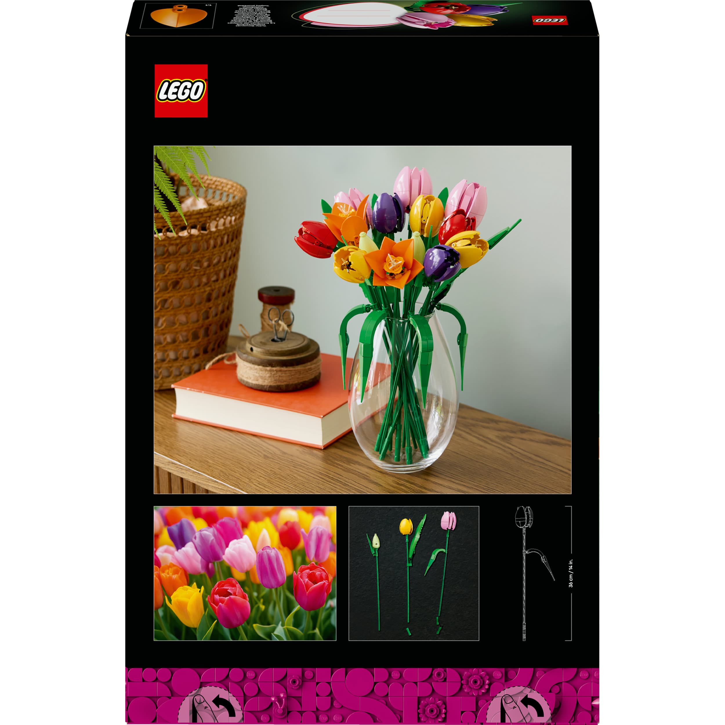 Der Tulpenstrauß ist eine schöne Aufmerksamkeit zu besonderen Anlässen wie dem Valentinstag, dem Muttertag oder einer Einweihungsparty. In der LEGO Builder App sind digitale Bauanleitungen zu diesem Bauset verfügbar, die den Blumenfans auch zeigen, wie weit sie mit ihrem Modell schon sind. Das Set besteht aus 576 Teilen.