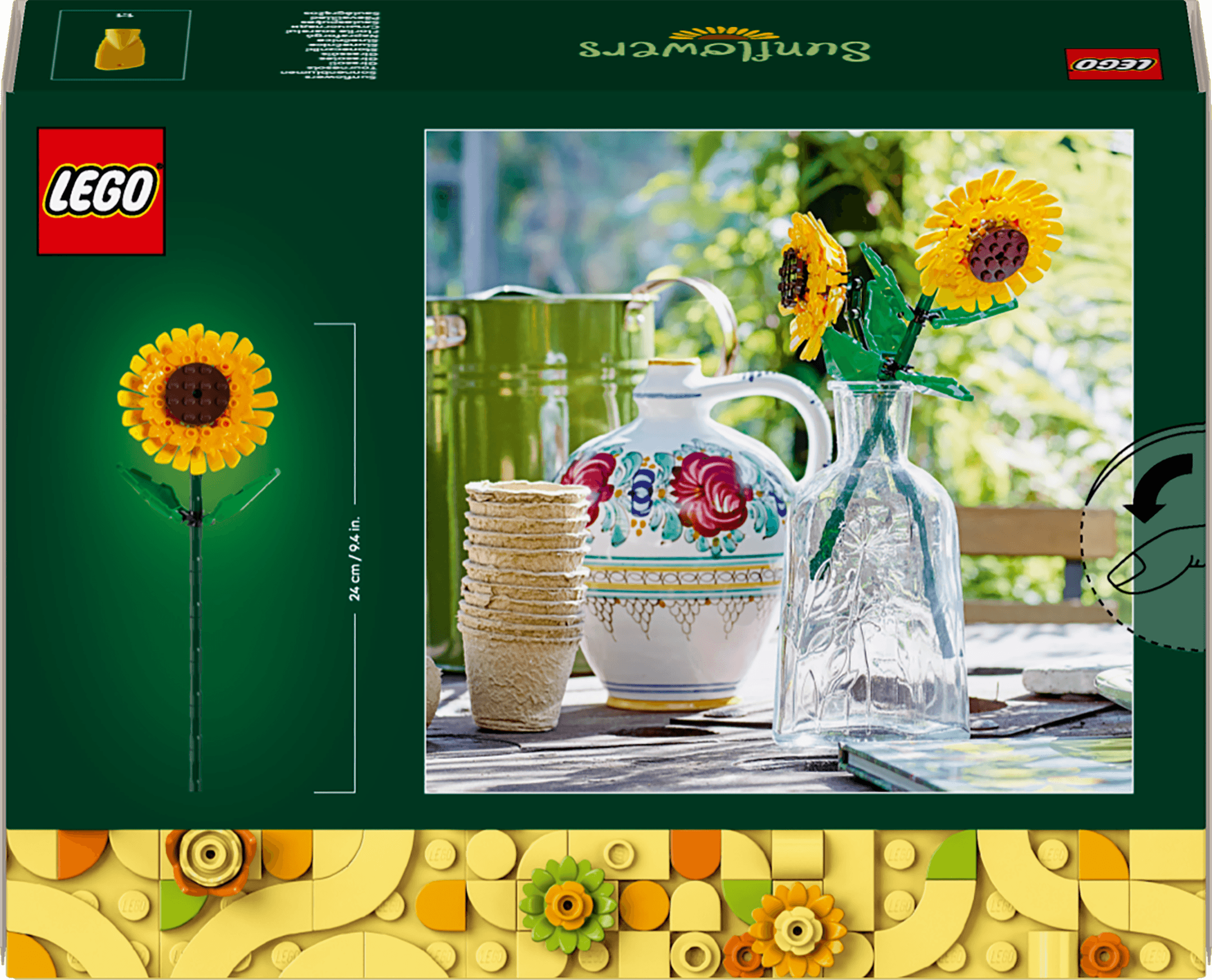 Das LEGO Set für Mädchen und Jungen enthält 2 künstliche Sonnenblumen zum Bauen, deren Stängel verstellbar sind, damit sie auch in die Vase deiner Wahl passen. Erschaffe einen spektakulären LEGO Blumenstrauß zum Ausstellen, den du mit den separat erhältlichen LEGO Sets„Rosen“ (40460),„Tulpen“ (40461) oder„Blumenstrauß“ (10280) noch bunter gestalten kannst.