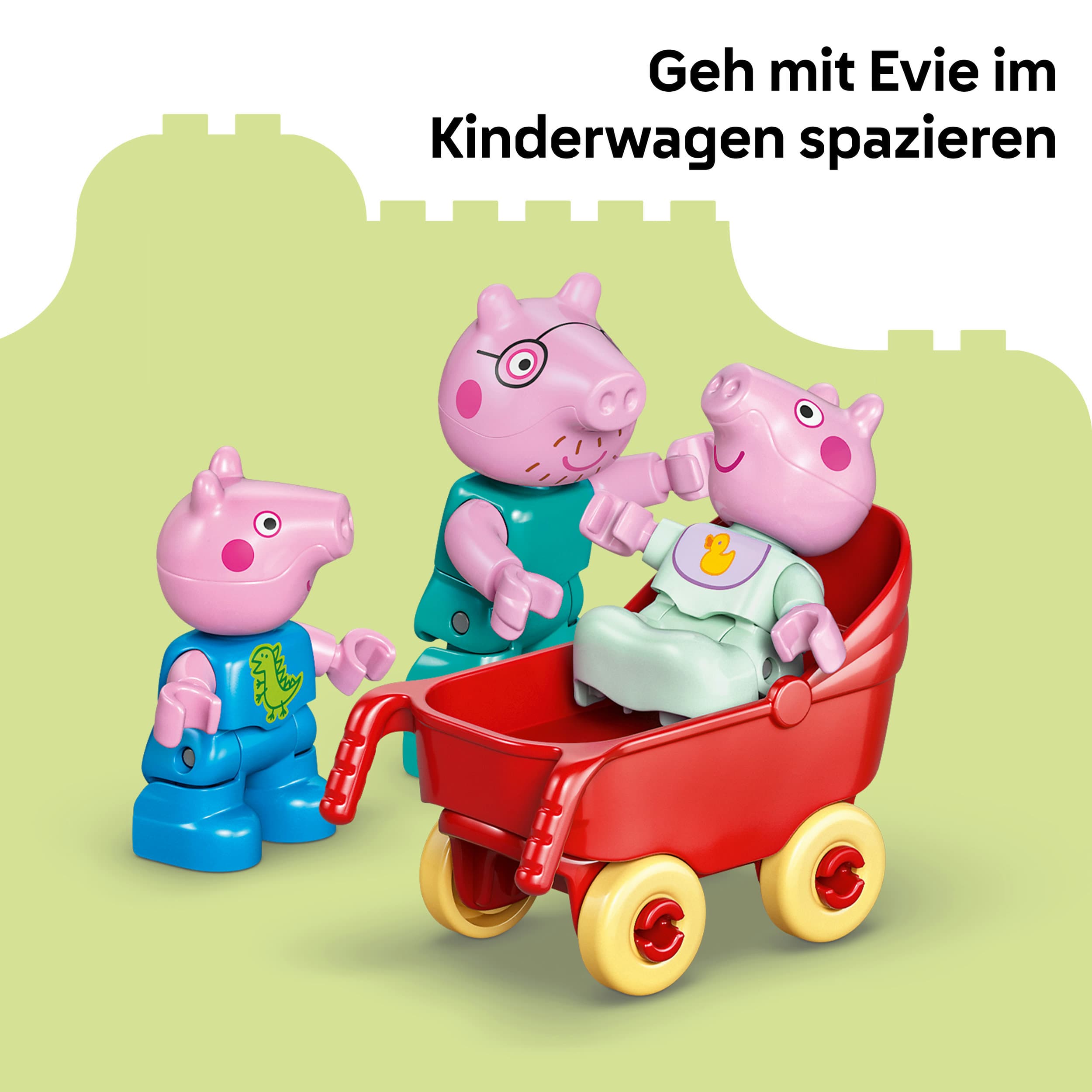 • PEPPA WUTZ SPIELZEUG: Das DUPLO Peppa Wutz Familienhaus lässt Kleinkinder ab 2 Jahren das neue Zuhause der Familie erkunden und stellt ihnen die gerade erst geborene Evie vor