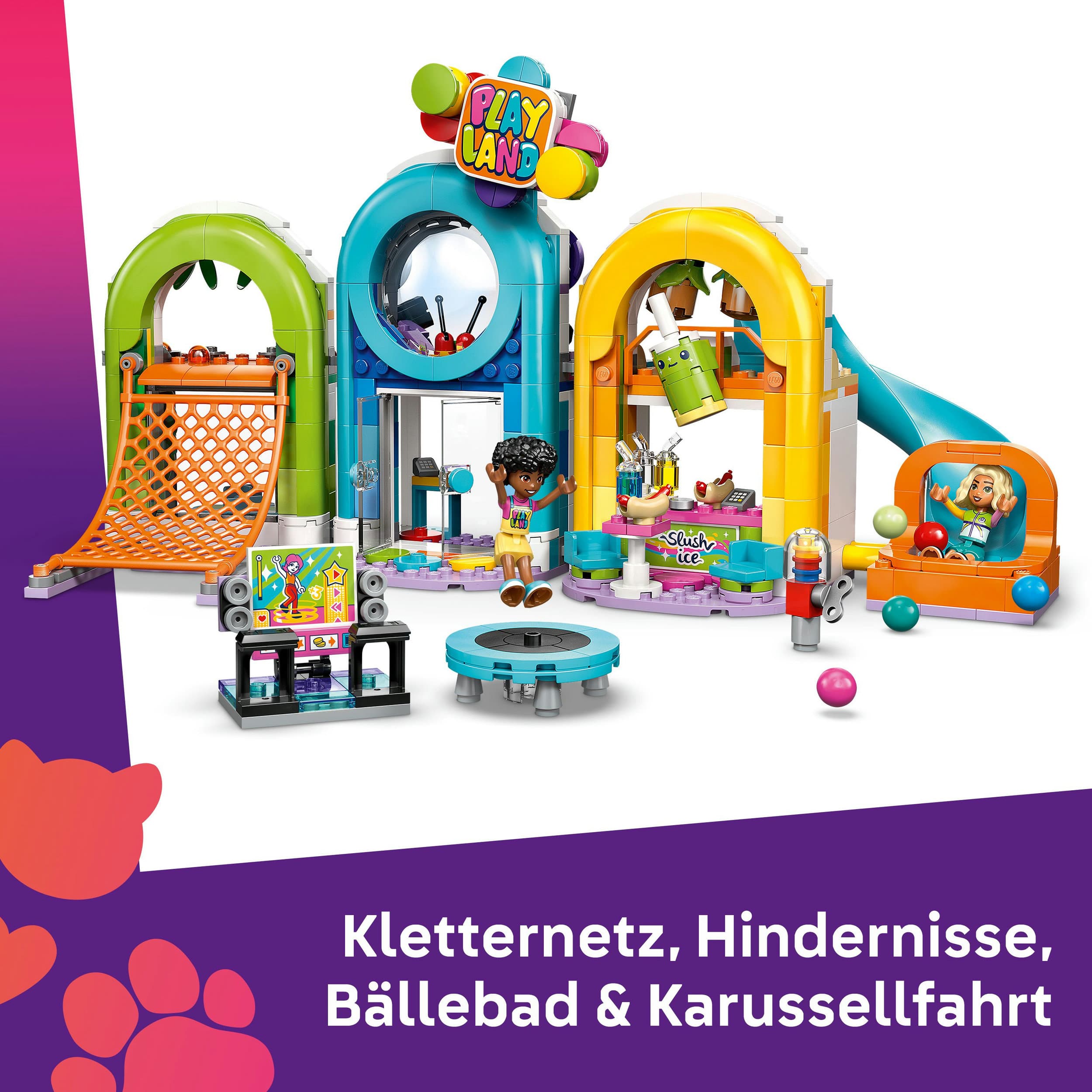 Mit dem LEGO Friends Indoor-Spielplatz (42686) können Kinder ab 7 Jahren eine fantasievolle Welt entdecken, in der Spiel und Bewegung im Mittelpunkt stehen. Das Spielset enthält 3 kleine Puppen, viele Zubehörteile und schön gestaltete Stationen, darunter ein Kletternetz, ein Ballpool, eine Rutsche, ein Karussell, eine Hasenfahrt und eine Snackbar. Diese Elemente regen zu immer neuen Geschichten an und machen das Bauset zu einem beliebten Spielzeug ab 7 Jahre.