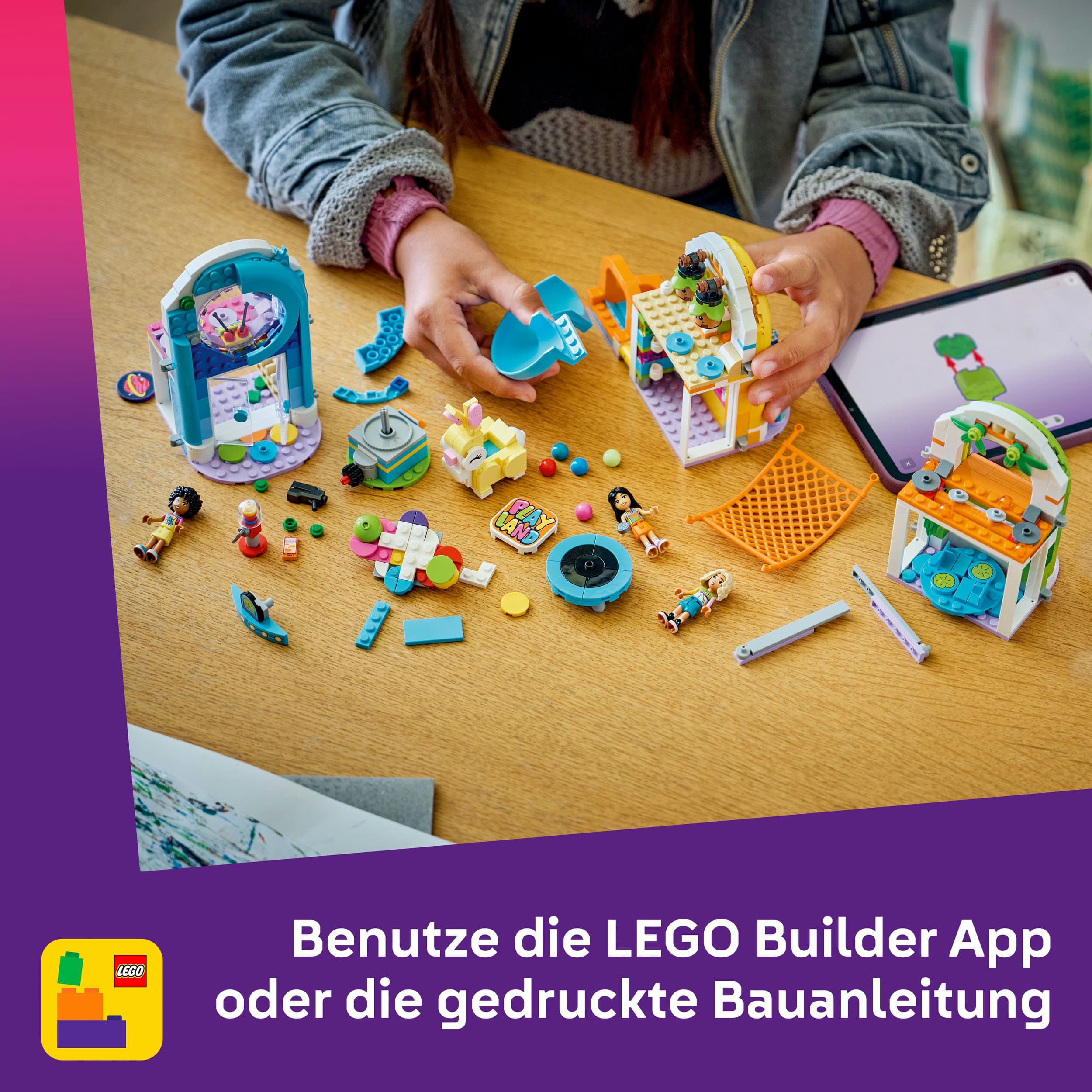 Auch Details wie eine Tanzmaschine, ein Trampolin, eine Kaugummimaschine und Slushies sind enthalten. Mädchen und Jungen können mit diesem farbenfrohen Set ihrer Fantasie freien Lauf lassen und spannende Abenteuer erfinden. Das LEGO Karussell und die interaktiven Spielfunktionen machen den Indoor-Spielplatz zu einem abwechslungsreichen Erlebnis.