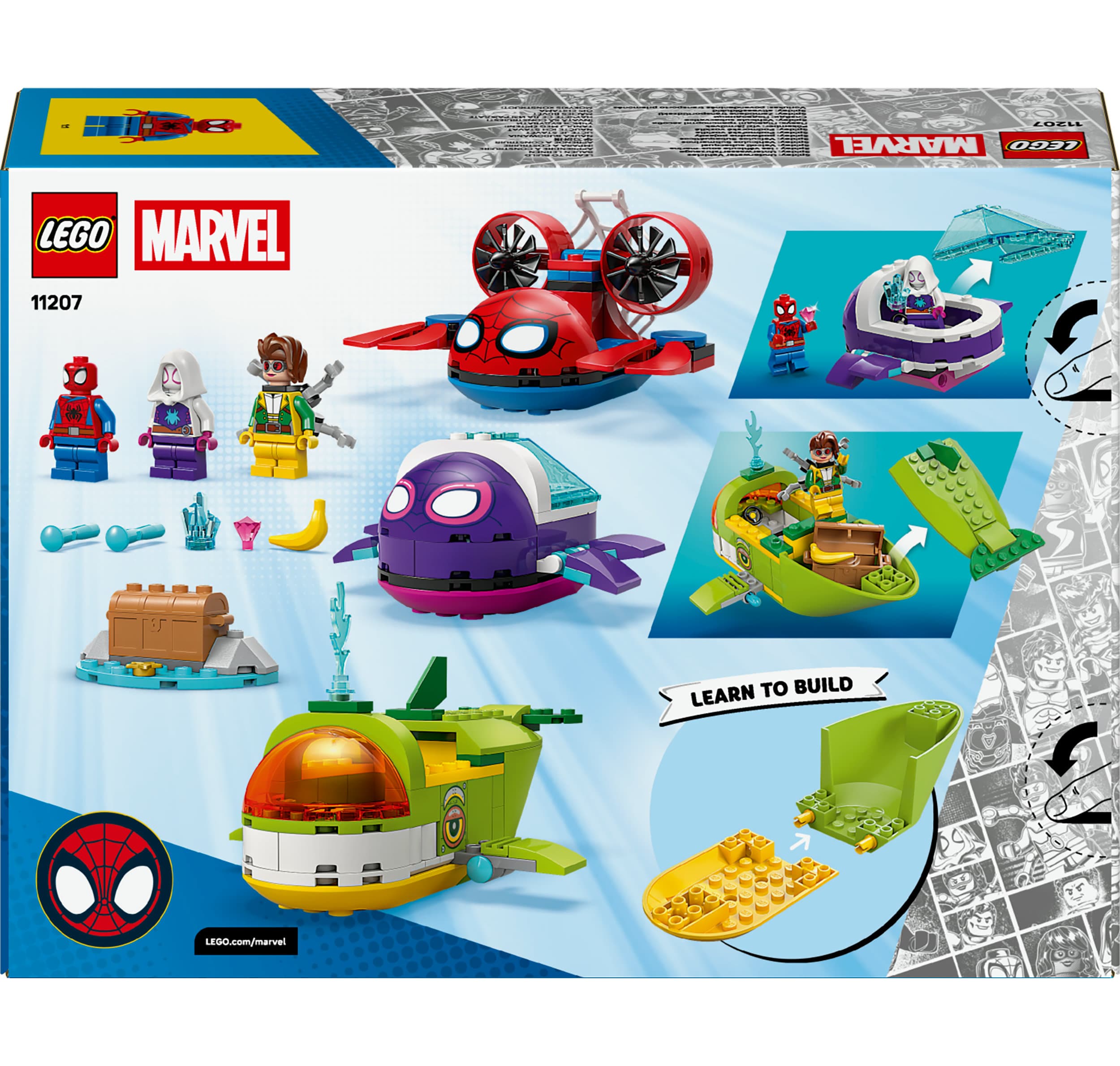 LEGO® ǀ Marvel Spidey: Unterwasserfahrzeuge (11207) schickt Marvel-Fans ab 4 Jahren in viele Unterwasserabenteuer. Beim Spielen mit den Minifiguren Spidey, Ghost-Spider und Doc-Ock in ihren 3 U-Booten entwickeln Kinder viele kreative Fähigkeiten.