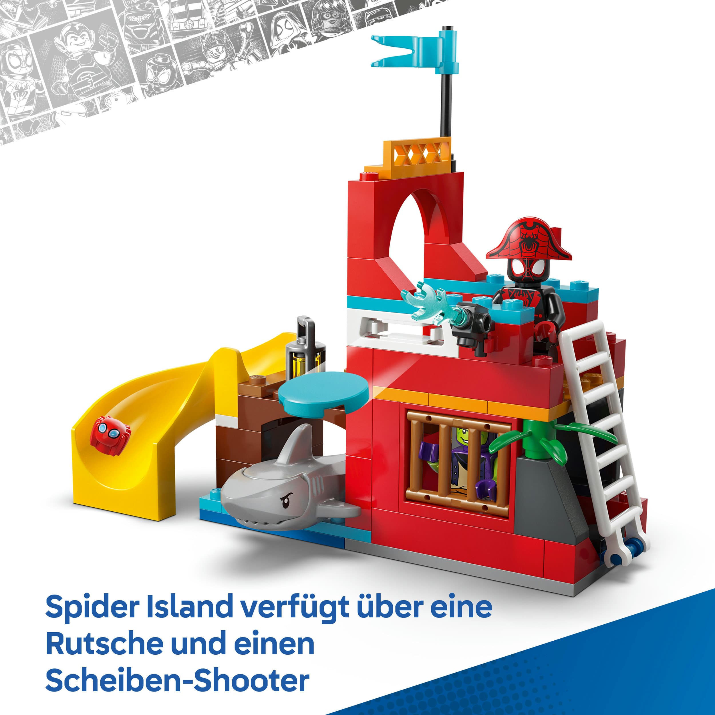 • 4 MINIFIGUREN: Erlebe jede Menge Actionspaß mit Spidey, Ghost-Spider, Miles „Spin“ Morales, Green Goblin und Trace-E auf dem Piratenschiff, auf Spider Island und auf den beiden kleineren Booten aus diesem Bauset
