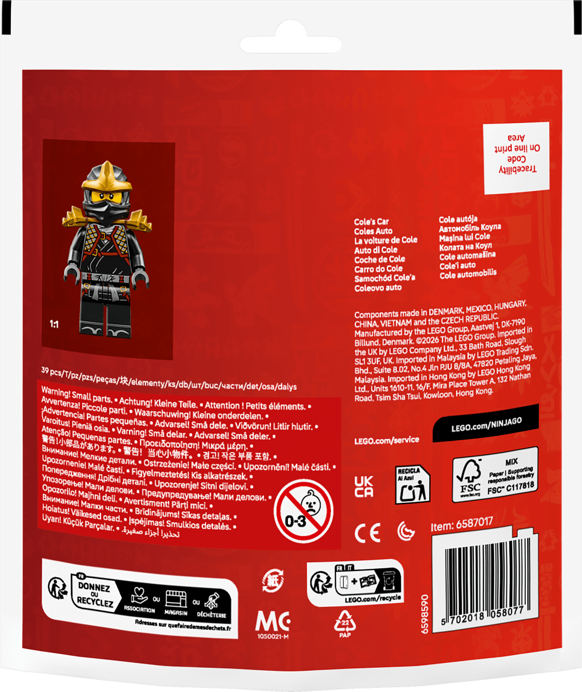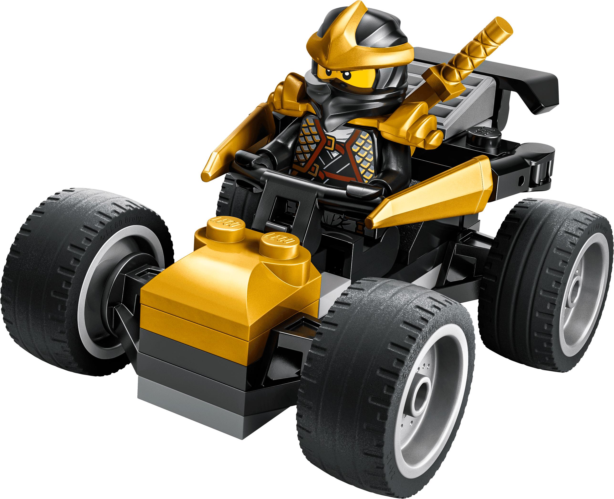 Mit der Mini-Version des supercoolen Ninja-Autos und der Minifigur Cole (mit goldenem Schwert) am Steuer können Kinder ab 6 Jahren spannende Actionszenen nachspielen.