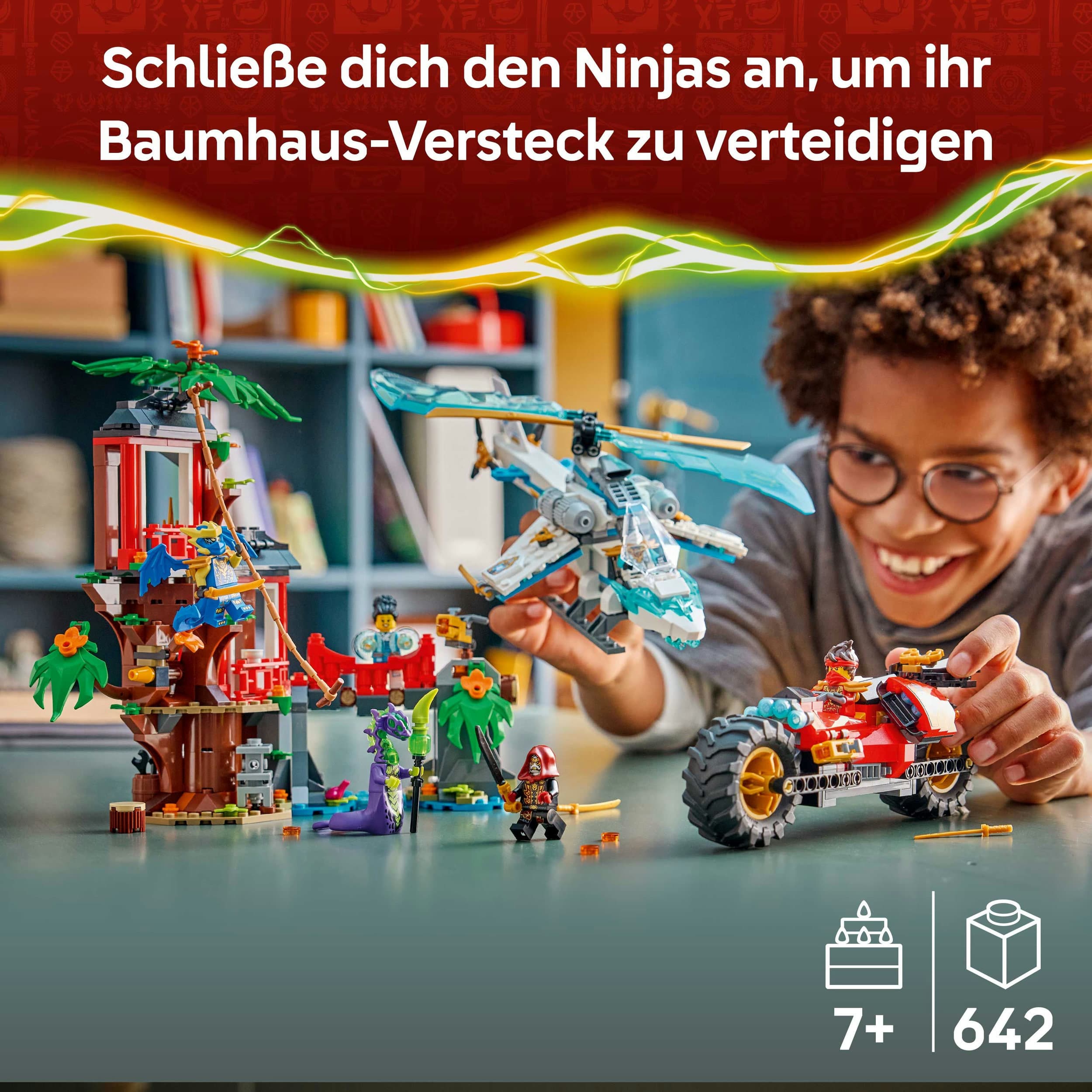 • LEGO SET MIT NINJA BIKE: Beim Showdown am Baumhaus bauen Kinder ab 7 Jahren ein spannendes Actionspielzeug und erleben aufregende Szenen aus der TV-Serie NINJAGO Aufstieg der Drachen