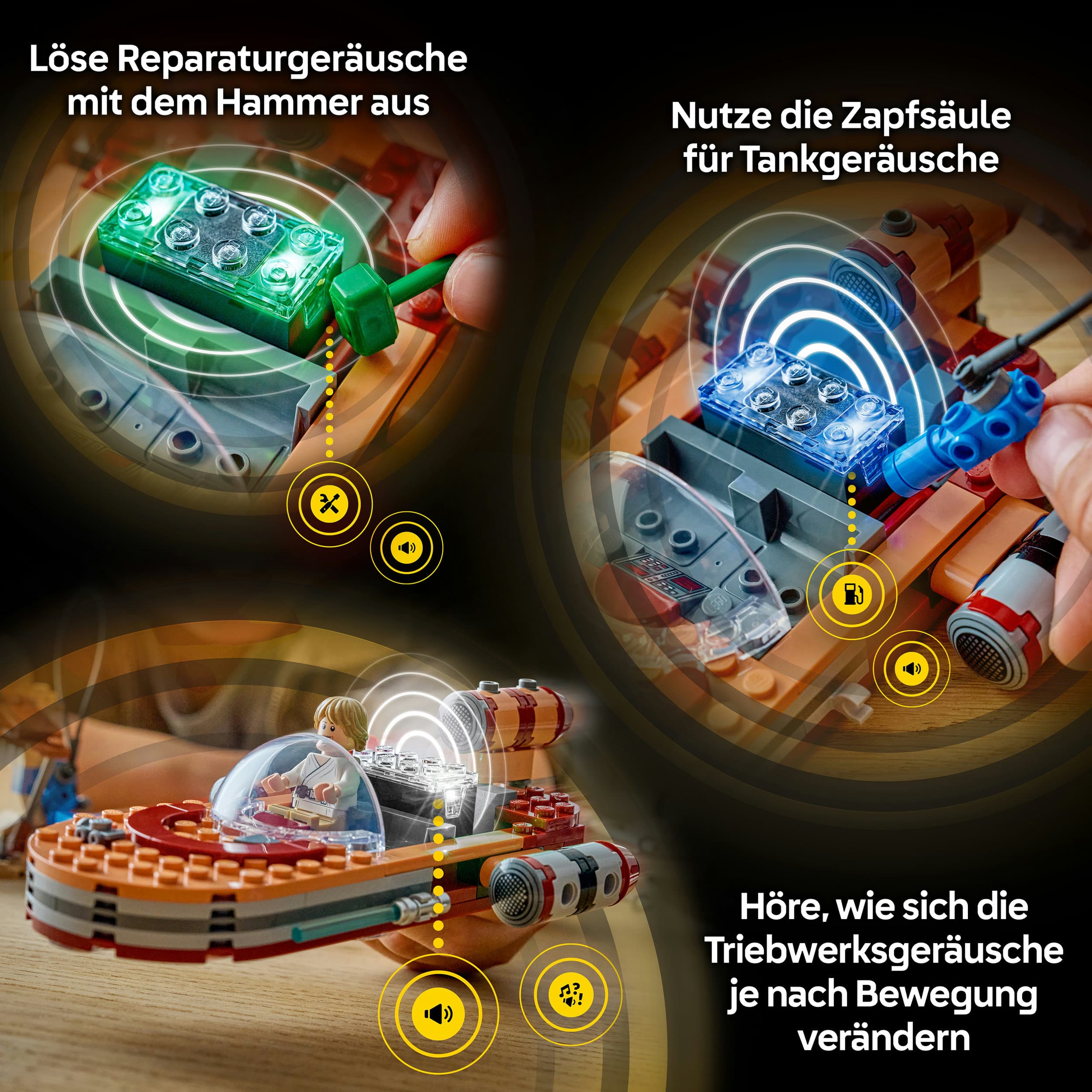 • KINDER SPIELZEUG: Tanke und repariere LEGO Star Wars SMART Play: Lukes Landspeeder an der Tankstelle, damit du ihn auf Missionen mit diesem LEGO Star Wars SMART Play kompatiblen Set begleiten kannst