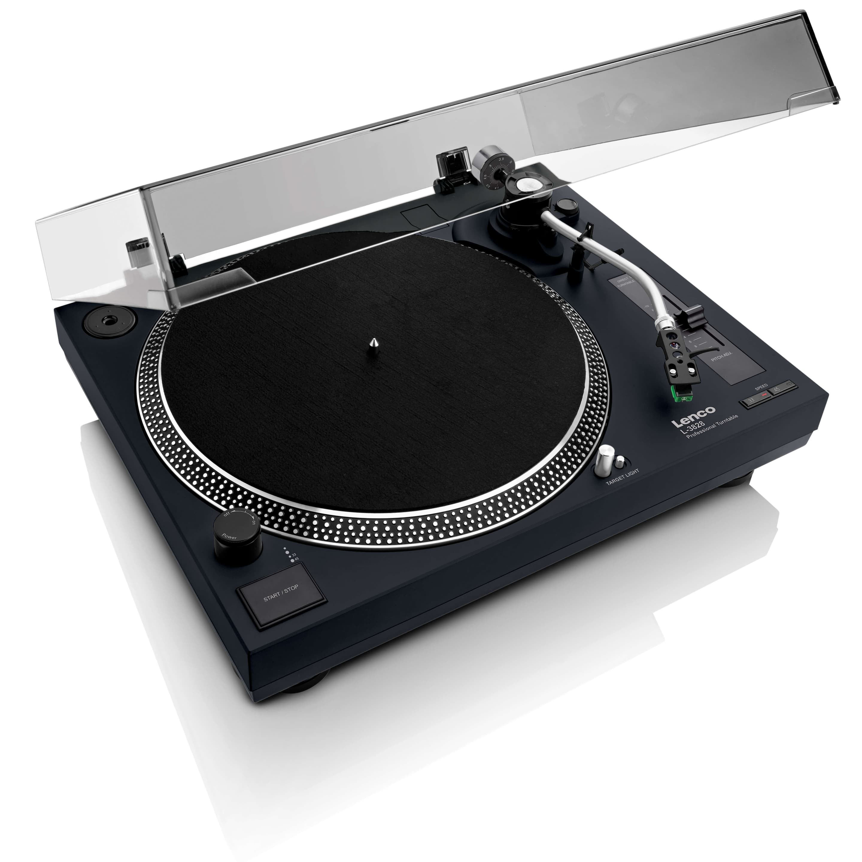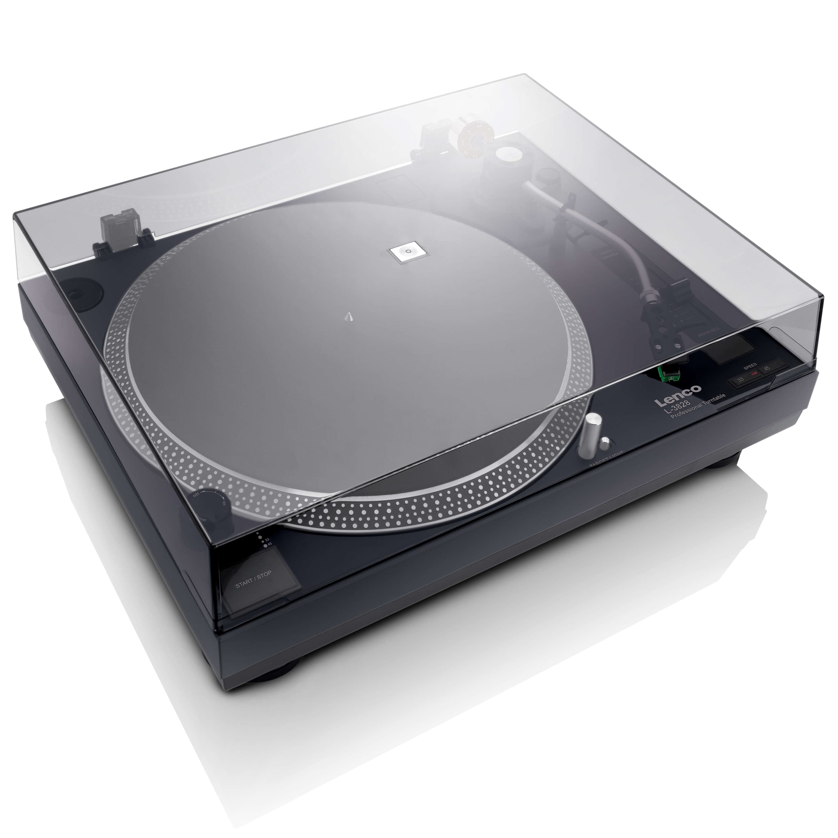 Der Lenco L-3828 ist ein kompakter, leistungsstarker Plattenspieler, mit dem Sie Ihr Lieblings-Vinyl ganz einfach auf Knopfdruck genießen können. Vergessen Sie komplizierte Musikinstallationen, denn mit dem Lenco L-3828 erwecken Sie Ihre Schallplatten mühelos wieder zum Leben. Egal, welche Musik Sie gerade hören, Sie können die Geschwindigkeit ganz einfach wie gewohnt von 33 auf 45 U/min umschalten. Der Plattenspieler ist kinderleicht an externe Lautsprecher über den RCA-Anschluss auf der Rückseite des Plattenspielers, anzuschließen. So ist jeder Raum mit Ihrer Musik gefüllt. Der Lenco L-3828 ist im Besonderen für DJs geeignet. Die Direct-Drive-Funktion (Schnellstart) sorgt dafür, dass die Platte sofort startet. Dieser Plattenspieler ist noch dazu für optimale Benutzerfreundlichkeit beleuchtet und hat ein Stroboskop. Dank des eingebauten Phono-Vorverstärkers können Sie den Lenco L-3828 direkt an Ihr Mischpult oder Ihre Stereoanlage anschließen. Der Lenco L-3828 wird mit einer abnehmbaren Staubschutzhaube geliefert, die den Plattenspieler schützt. Das Gerät lässt sich leicht mit einem weichen, trockenen Tuch sauber halten und die Nadel können Sie leicht selbst austauschen. Im Laufe der Jahre sind Ihre Schallplatten möglicherweise alt und empfindlich geworden. Damit Ihre Lieblingsmusik nicht verloren geht, können Sie Ihre kostbare Vinylsammlung ganz einfach mit dem Lenco L-3828 digitalisieren. Schließen Sie den Plattenspieler über den USB-Anschluss an Ihren Computer an, und die Arbeit ist getan. Wo auch immer Sie hingehen, Sie werden immer Ihre Lieblingsmusik dabei haben. Der Lenco L-3828 ist in schwarz erhältlich. • Plattenspieler mit Direktantrieb USB- Aufnahme