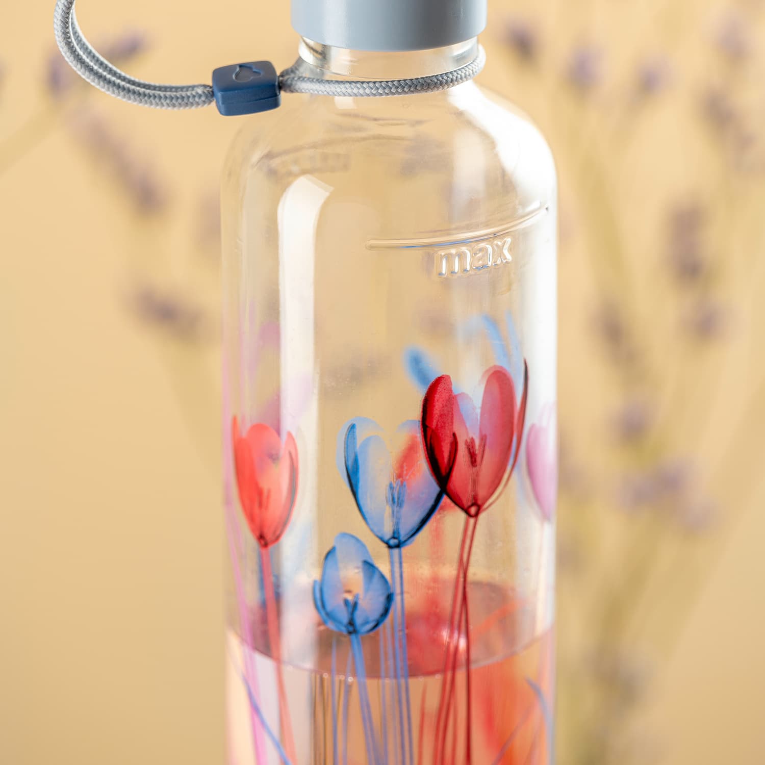 Diese zylindrische Glasflasche verbindet Funktionalität mit einem ansprechenden, modernen Aussehen. Der schöne Aufdruck macht die Flasche zu einem echten Blickfang, egal ob im Büro, beim Sport oder in der Freizeit. Dank des robusten Materials und des sicheren Verschlusses lassen sich Getränke bequem transportieren. Die integrierte Messskala an der Flaschenseite ermöglicht eine genaue Füllmengenkontrolle. Aufgrund ihres ansprechenden Designs eignet sich die Trinkflasche auch hervorragend als Geschenkidee.