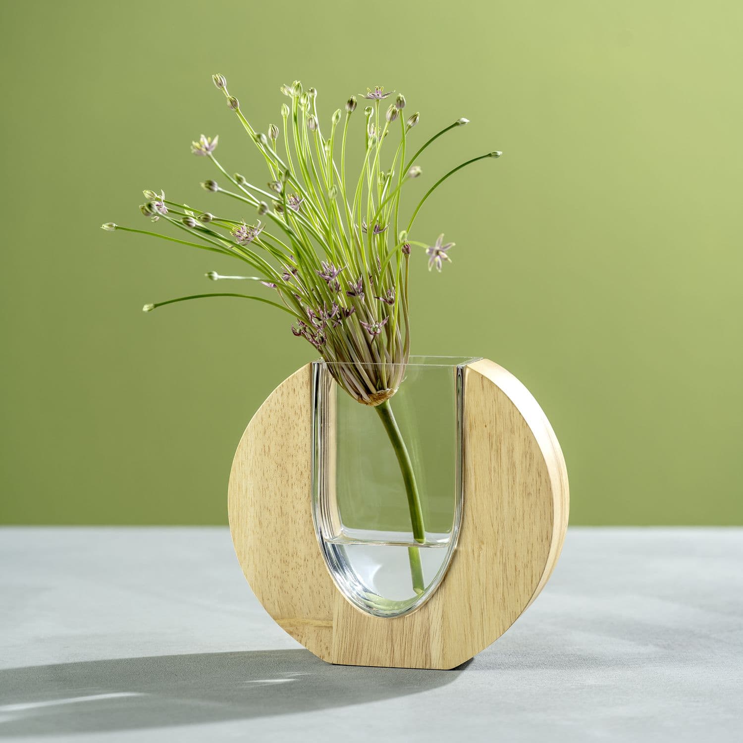 Entdecke die einzigartige Eleganz der Vase LEGNO - die perfekte Fusion von Glas und Holz! Diese ellipsenförmige Glasvase in einem modernen und ausgefallenen Design verleiht deinem Zuhause sofort eine gehobene Atmosphäre. Das außergewöhnliche Zusammenspiel von klarem Glas und warmem Holz verleiht der Vase LEGNO eine zeitlose Eleganz, die in jeden Raum passt. Neben ihrem ästhetischen Wert ist die Vase LEGNO auch äußerst praktisch und bietet ausreichend Platz für Blumenarrangements. Die hochwertigen Materialien und die erstklassige Verarbeitung versprechen langlebige Freude an diesem Kunstwerk. Hol dir die Vase LEGNO und verleihe deinem Zuhause eine einzigartige Note der Eleganz und Natürlichkeit.
