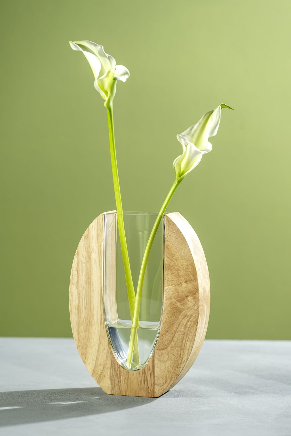 Entdecke die einzigartige Eleganz der Vase LEGNO - die perfekte Fusion von Glas und Holz! Diese ellipsenförmige Glasvase in einem modernen und ausgefallenen Design verleiht deinem Zuhause sofort eine gehobene Atmosphäre. Das außergewöhnliche Zusammenspiel von klarem Glas und warmem Holz verleiht der Vase LEGNO eine zeitlose Eleganz, die in jeden Raum passt. Neben ihrem ästhetischen Wert ist die Vase LEGNO auch äußerst praktisch und bietet ausreichend Platz für Blumenarrangements. Die hochwertigen Materialien und die erstklassige Verarbeitung versprechen langlebige Freude an diesem Kunstwerk. Hol dir die Vase LEGNO und verleihe deinem Zuhause eine einzigartige Note der Eleganz und Natürlichkeit.