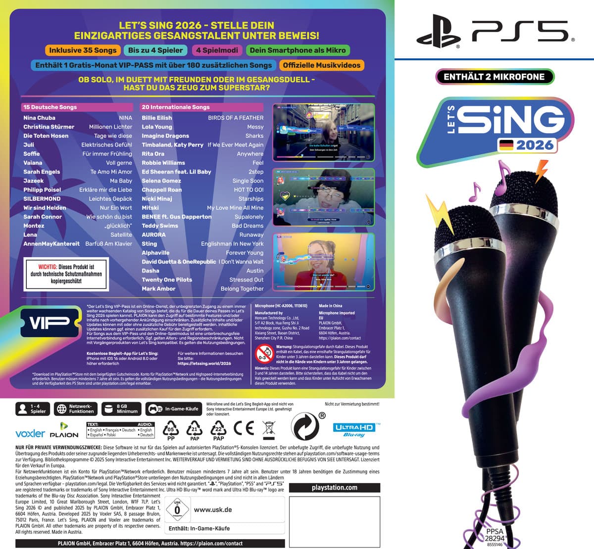 Deutsche Songs sind nur als Downloadcode enthalten!!! Downloadcode bei Neukauf enthalten, einmalig verwendbar!