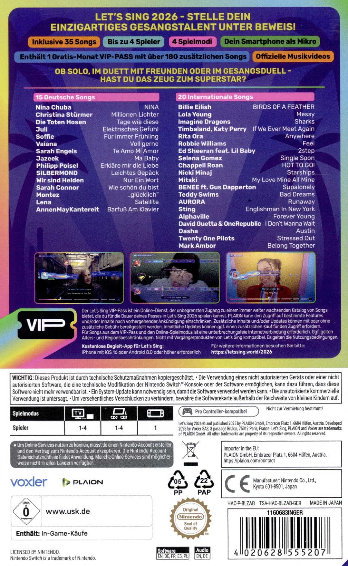 Ob du deine Stimmbänder solo aufwärmst, im Duett singst oder mit Freunden konkurrierst, Let's Sing 2026 bietet eine unschlagbare Playlist und endlosen Spaß!