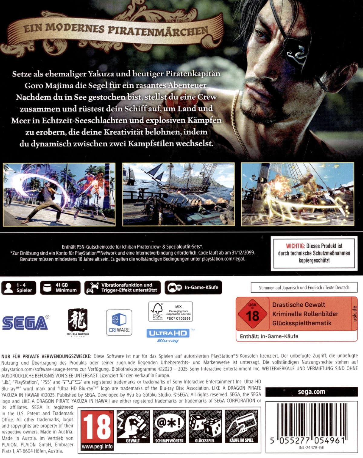 Goro Majima, ein berüchtigter Ex-Yakuza, erleidet plötzlich Schiffbruch auf einer abgelegenen Insel im Pazifik. Da er sich nicht einmal an seinen eigenen Namen erinnern kann, macht er sich auf die Suche nach Hinweisen auf seine verlorenen Erinnerungen, begleitet von einem Jungen namens Noah, der ihm das Leben gerettet hat. Schon bald werden sie in einen Konflikt zwischen Halsabschneidern, modernen Piraten und anderen Schurken um einen legendären Schatz verwickelt.