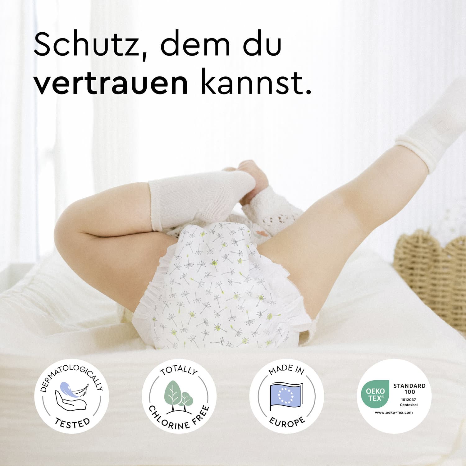 Diese Windeln kombinieren Funktionalität mit einem hautfreundlichen Konzept. Die sorgfältig ausgewählten, weichen Materialien schmiegen sich sanft an die empfindliche Babyhaut an. Dank des flexiblen Rückens und der speziellen Barriere bieten die Windeln Sicherheit bei Tag und in der Nacht. Das Design ist bewusst schlicht gehalten und verzichtet auf unnötige Zusätze, um den Fokus auf das Wesentliche zu legen: den Komfort und das Wohlbefinden des Babys.