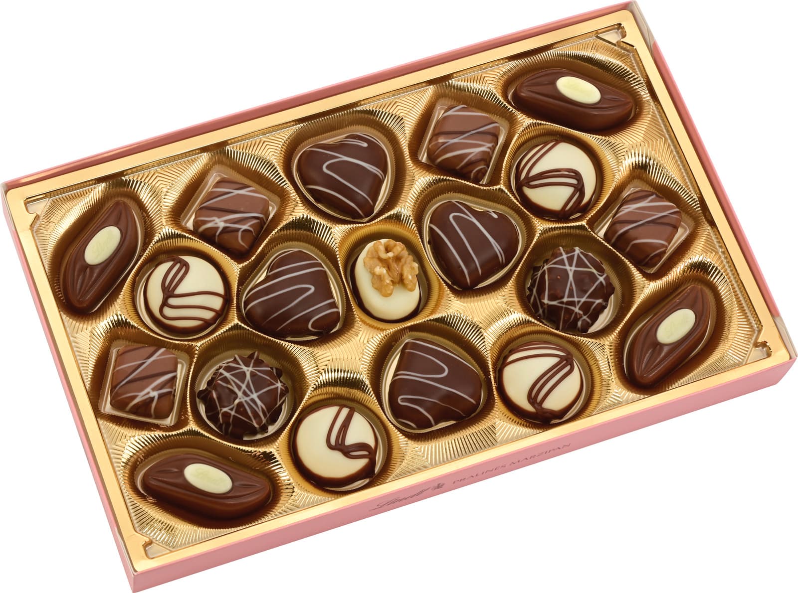 | Zutaten | Zucker, MANDELN, Kakaobutter, VollMILCHpulver, Kakaomasse, Invertzuckersirup, HASELNÜSSE, MagerMILCHpulver, WALNÜSSE, Glukosesirup, PISTAZIEN, Orangenschalen, Zitronenschalen, MILCHzucker, Glukose-Fruktose-Sirup, Feuchthaltemittel (Sorbit, Invertase), Kirschwasser, BUTTERreinfett, Emulgator (SOJAlecithin), Alkohol, GERSTENmalzextrakt, natürliche Aromen, Aromen, Salz, Säuerungsmittel (Citronensäure). Kann andere SCHALENFRÜCHTE, WEIZEN und ROGGEN enthalten. |
