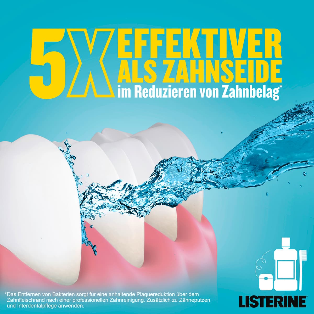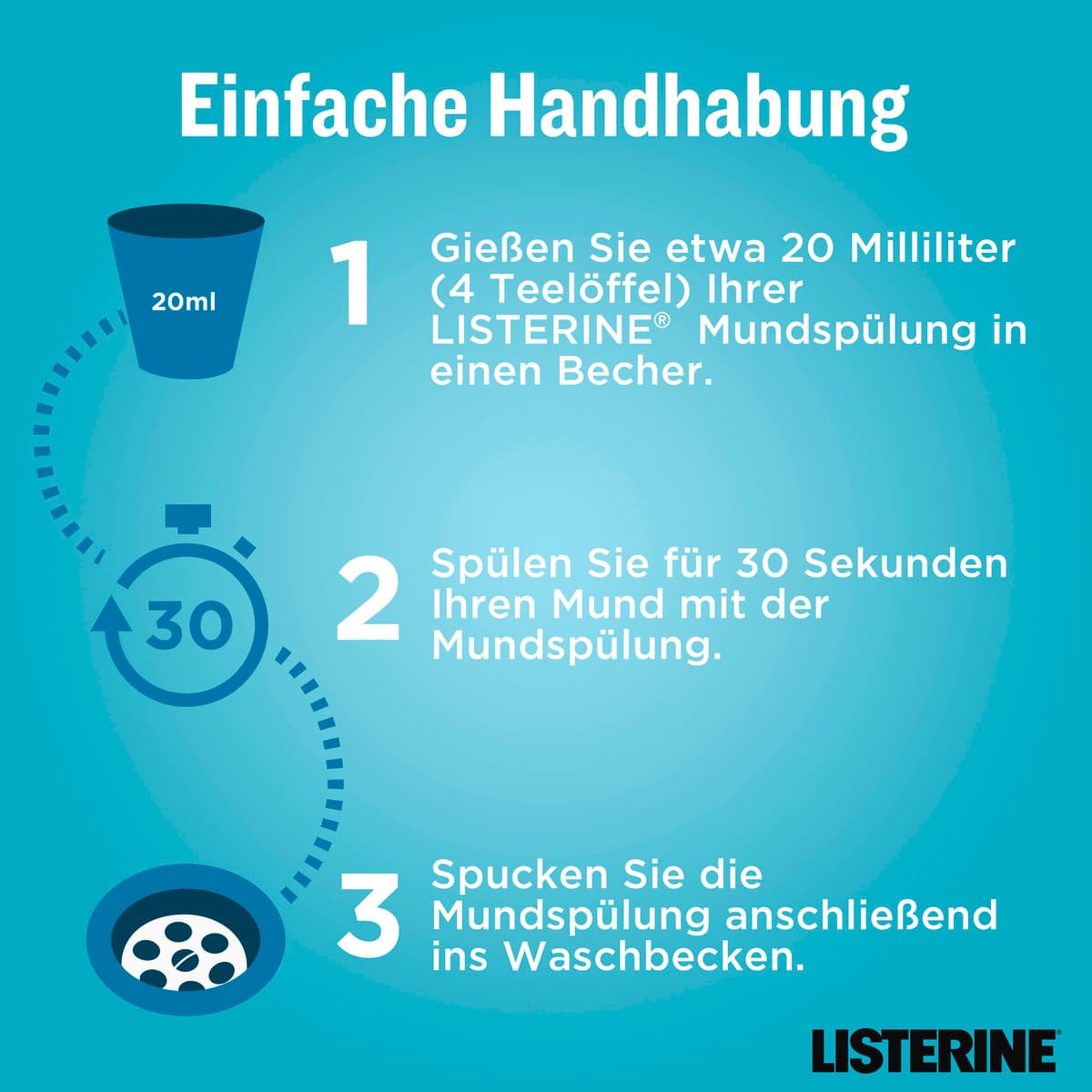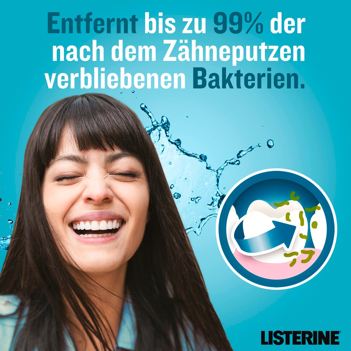 - Antibakterielle Wirkung – Die Mundspülung von LISTERINE entfernt bis zu 97% der nach dem Zähneputzen verbliebenen Bakterien und gibt ein langanhaltendes Frischegefühl.