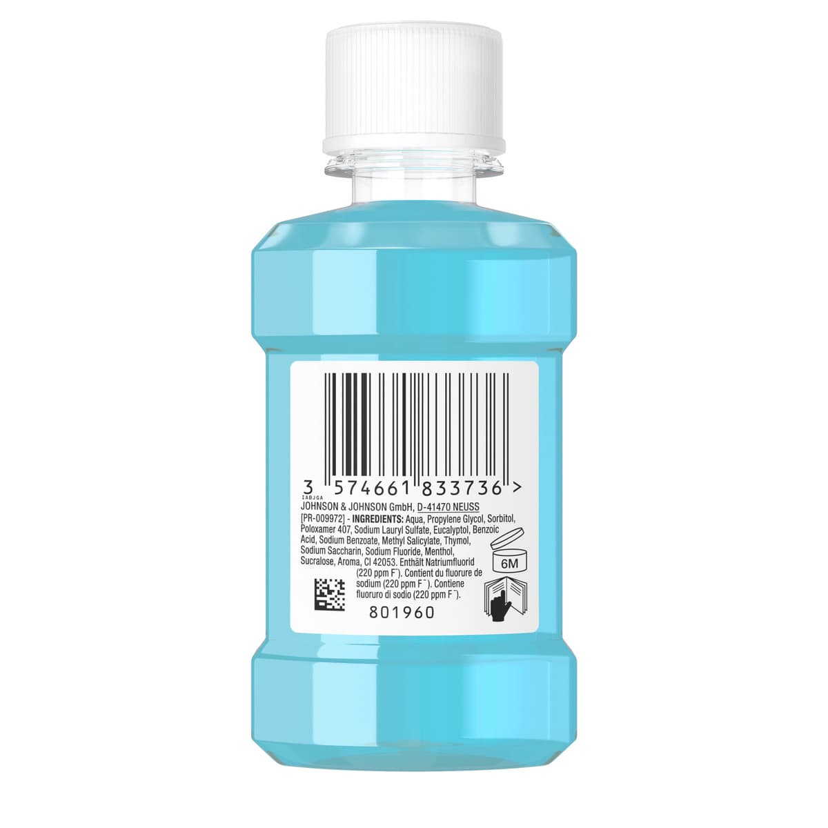 | Inhaltsstoffe | Aqua, Propylene Glycol, Sorbitol, Poloxamer 407, Sodium Lauryl Sulfate, Eucalyptol, Benzoic Acid, Sodium Benzoate, Methyl Salicylate, Thymol, Sodium Saccharin, Sodium Fluoride, Menthol, Sucralose, Aroma, CI 42053. Enthält Natriumfluorid (220 ppm F-) |