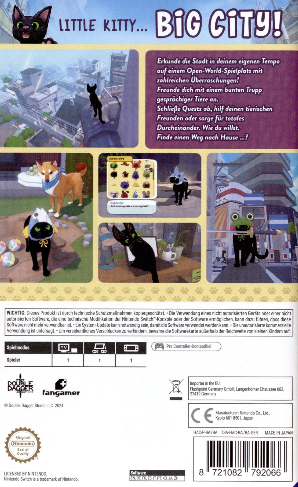 Erkunde die Stadt, schließe neue Freundschaften mit streunenden Tieren, trage entzückende Hüte und hinterlasse mehr als nur ein kleines Chaos in deinem Kielwasser. Nimm Kitty mit auf eine abenteuerliche Entdeckungsreise, finde neue Freunde, trage entzückende Hüte und hinterlasse mehr als nur ein kleines Chaos in deinem Kielwasser. Ist das nicht das, was Katzen am besten können?