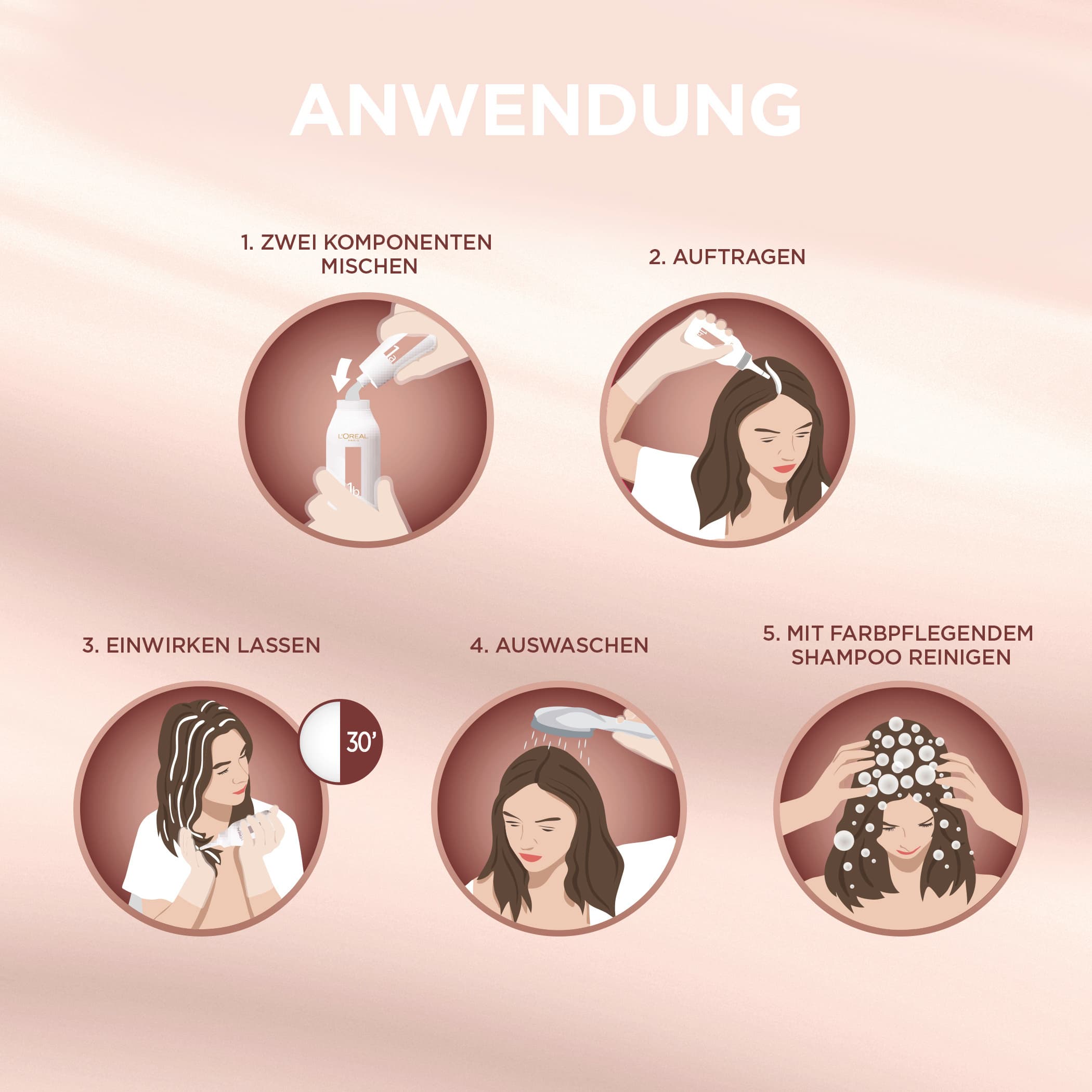 | Anwendungshinweis | Vorbereitung: Lesen Sie in jedem Fall auch die beiliegende Gebrauchsanweisung noch einmal genau durch. Denken Sie daran, einen Allgergieverdachtstest 48 Stunden vor Gebrauch der Coloration durchzuführen. Nehmen Sie sich vor dem Färben Zeit und legen Sie folgende Hilfsmittel bereit: Ein altes Handtuch, Einweghandschuhe, Haarklammern aus Plastik und einen Wecker, damit Sie die Einwirkzeit nicht vergessen. Färben: Die Produkte von EXCELLENCE sind leicht in der Anwendung: Es werden zwei Komponenten gemischt (Colorations-Creme und Entwickler) und die Coloration wird dann auf das ungewaschene Haar aufgetragen. Nach der Einwirkzeit einfach ausspülen und mit Farbpflege-Shampoo reinigem. |