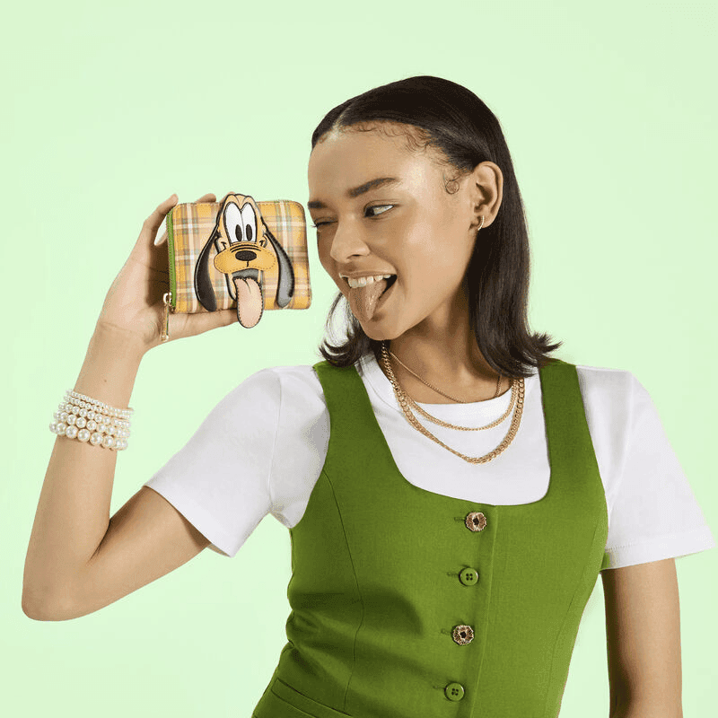Loungefly Disney Pluto 95th Anniversary Plaid Zip Around Wallet