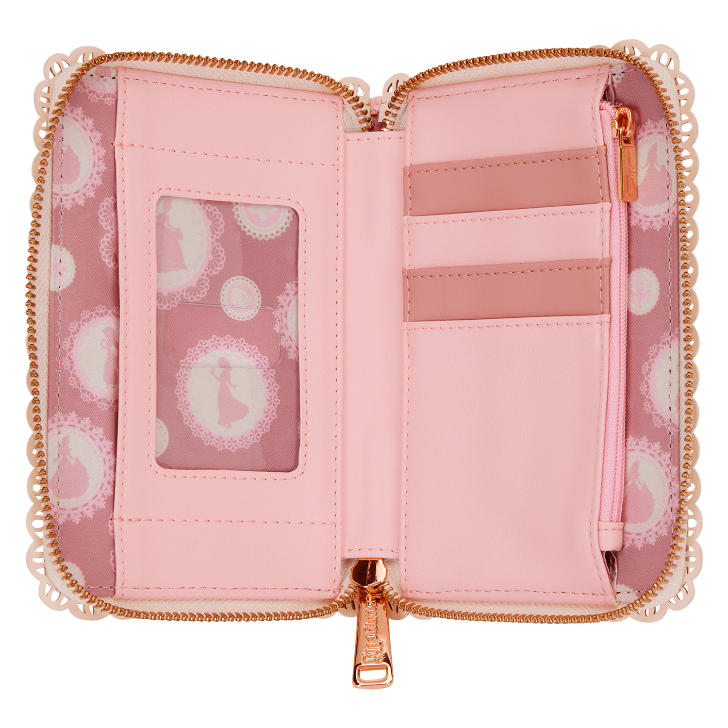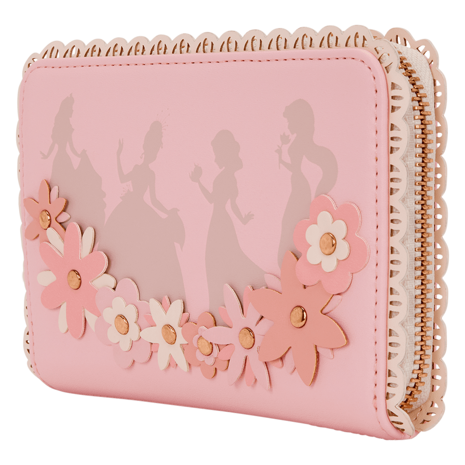 Diese Geldbörse ist das perfekte Prinzessinnen-Accessoire für Ihr Outfit. Auf der Vorderseite finden Sie die Silhouetten einiger Ihrer Lieblings-Disney-Prinzessinnen. 3D-Blumen und spitzenartige Verzierungen entlang der Kanten verleihen ihr einen eleganten Look. Im Inneren befinden sich vier Kartenfächer und ein durchsichtiges Fach für Ihren Ausweis.