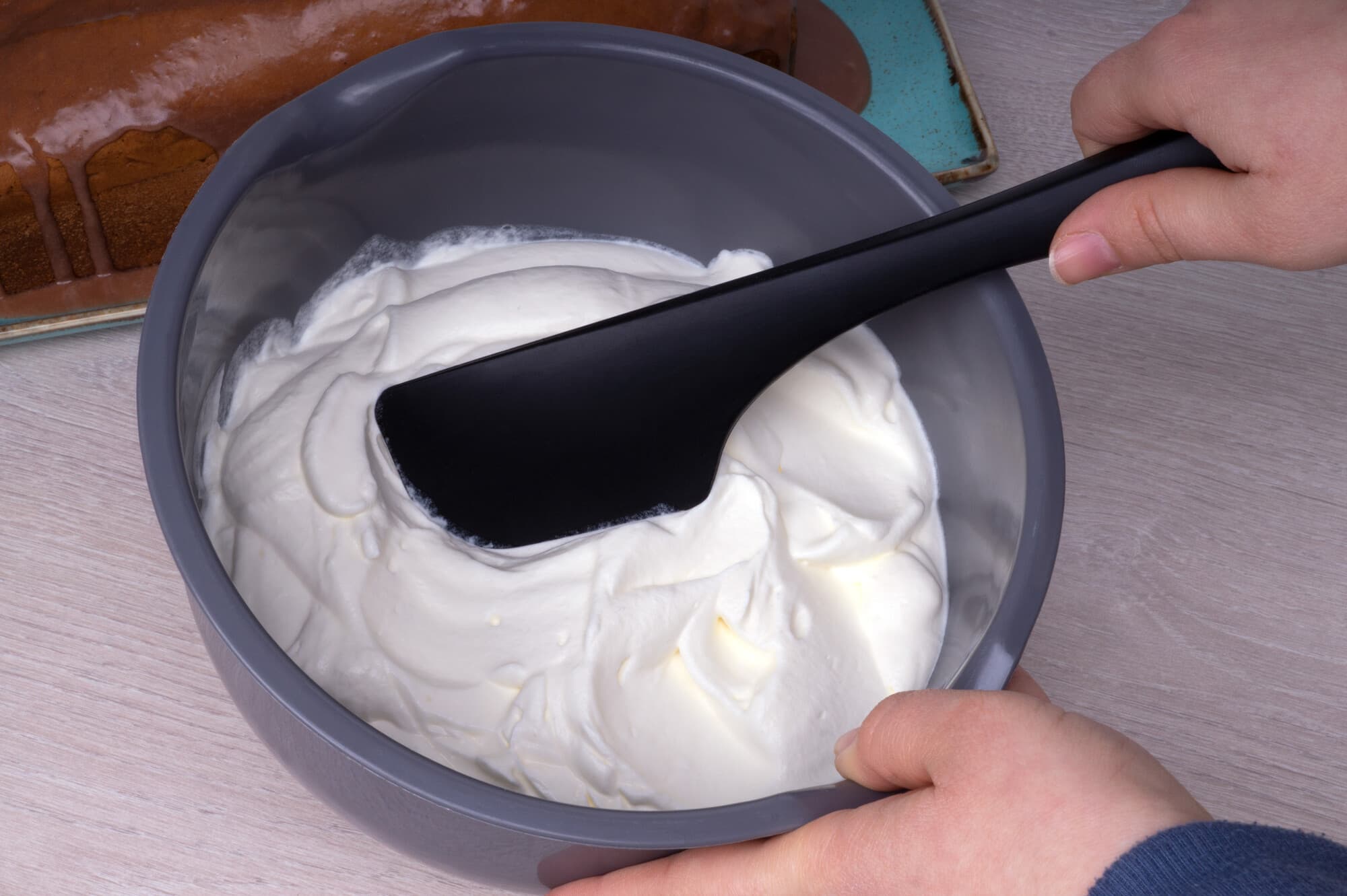 Ideal zum Verteilen von Kuchen- oder Pizzateig auf dem Backblech und in der Backform. Auch zum Glattstreichen von Sahne, Cremes, Pudding, Schokolade, Marmelade oder Pasten auf Kuchen und Torten eignet sich der Teigschaber hervorragend. Verwende ihn zum Unterheben von Eischnee oder zum Vermengen von Zutaten.