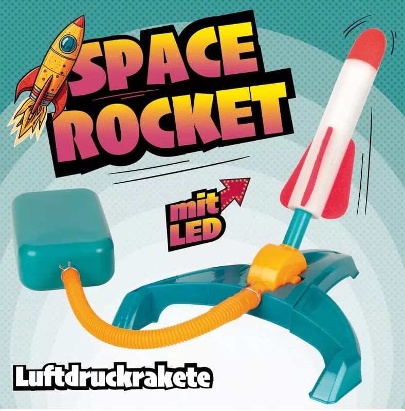 TapirElla Space Rocket LuftdruckraketeTritt Drauf, Flieg Los!3 Schaumstoffraketen im Geschenkkarton, eine davon mit LED Lichtinkl. Standfuß und Luftkissen