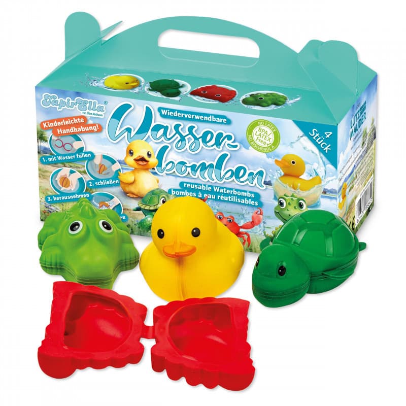 Wiederverwendbare Wasserbomben Tiere aus Silikon mit Magnetverschluss.