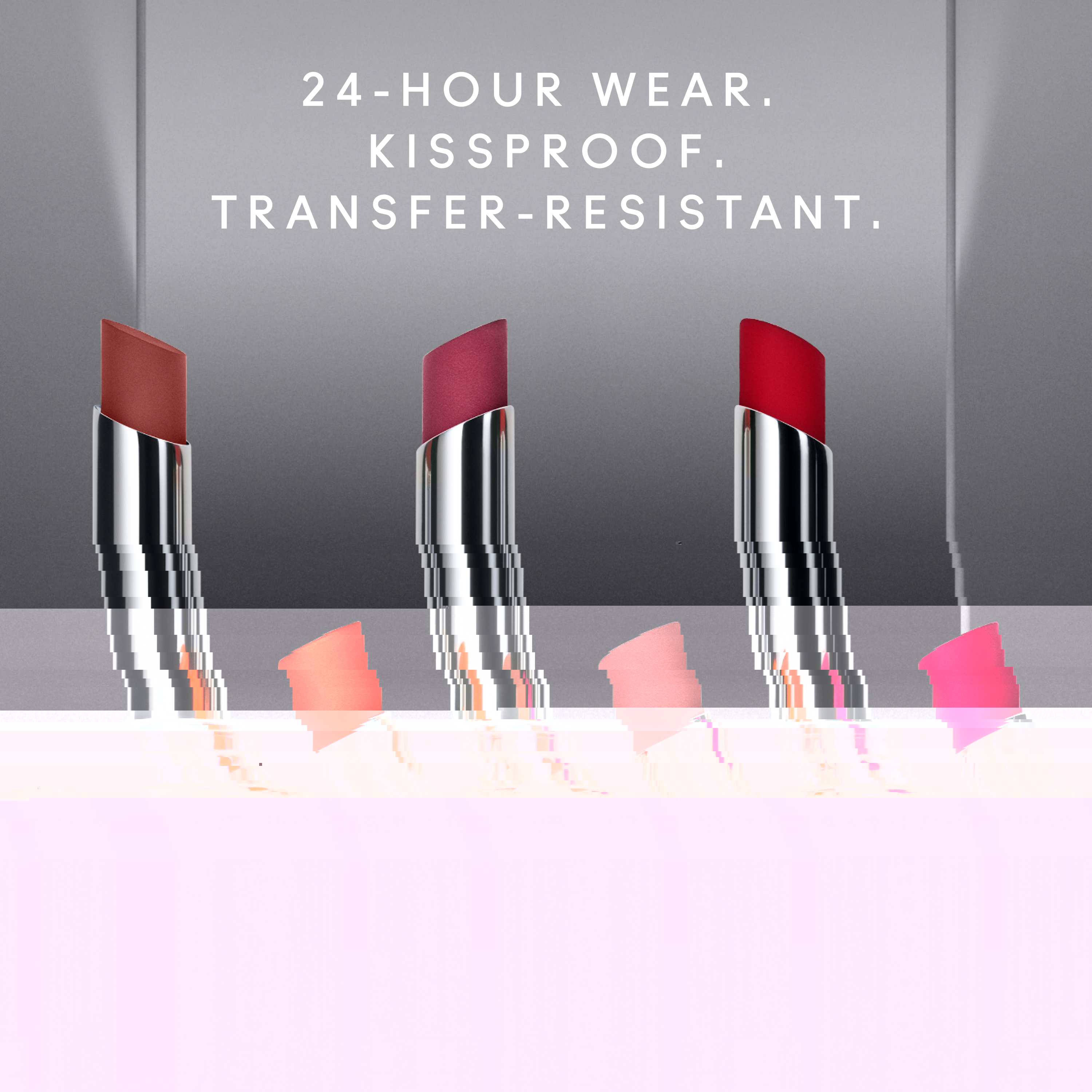 Ein kussechter undübertragungssicherer Lippenstift mit 24 Stunden Tragezeit und satter, matter Farbe.