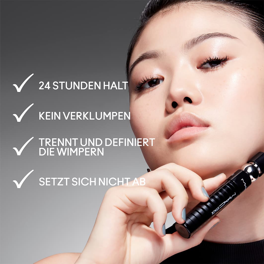 Unsere preisgekrönte Mascara ist wasserfest, wischfest und hält 24 Stunden! Die aufbaubare, klumpenresistente M-A-CStack Waterproof Mascara verleiht Ihnen individuelles, der Schwerkraft trotzendes Volumen sowie sofortigen Wimpernlift und -länge in einer wasserfesten Formel. Die Drench-Defense-Technologie hilft, die Mascara um Ihre Wimpern zu hüllen und ist somit wasserabweisend.
