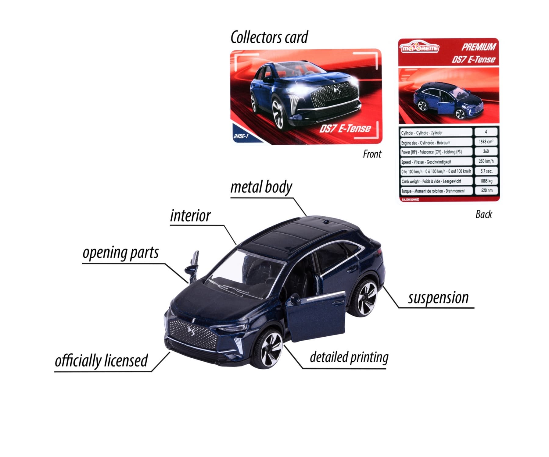 Majorette – Premium Cars – DS7 (7,5 cm), mit Sammelkarte, Freilauf, zu öffnende Teile und Federung, kleines Modellauto für Kinder ab 3 Jahren