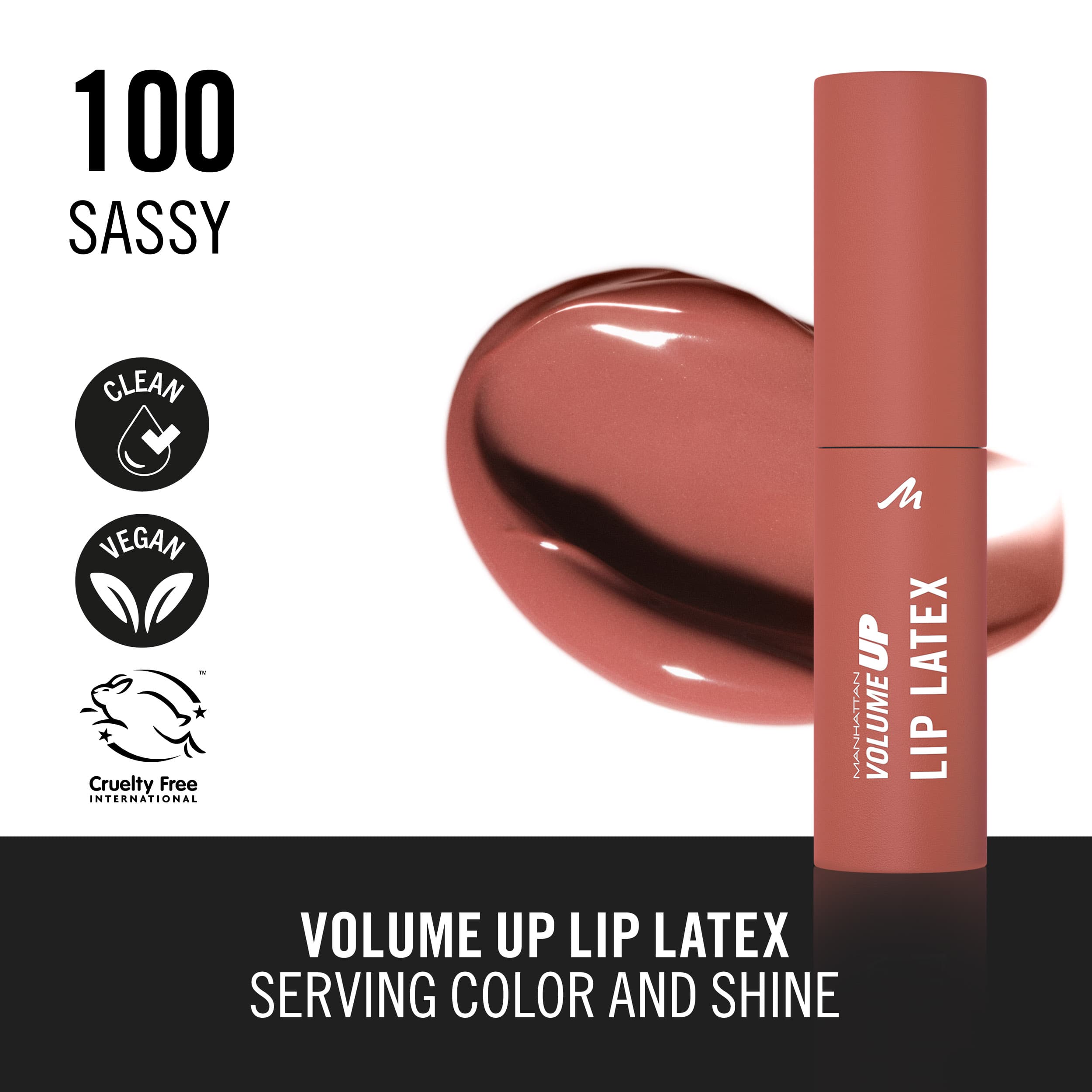 SERVING COLOR AND SHINE. Lips on fleek mit MANHATTAN Volume Up Lip Latex für Latex-Glanz mit intensiver Farbe! Der diamantförmige Applikator lässt die Farbe präzise und on point auftragen. Aloe Vera, Hyaluronsäure und Vitamin E versorgen die Lippen mit Feuchtigkeit und sorgen für einen smoothen, glatten, shiny Look. Looking gorgeous: Der MANHATTAN Volume Up Lip Latex hinterlässt einen Lip-Stain-Effekt. Die vegane Formel ist cruelty free. Information: Enthält kein Latex. MANHATTAN ist im Rahmen des Cruelty Free International Leaping Bunny Programms als tierversuchsfrei anerkannt.