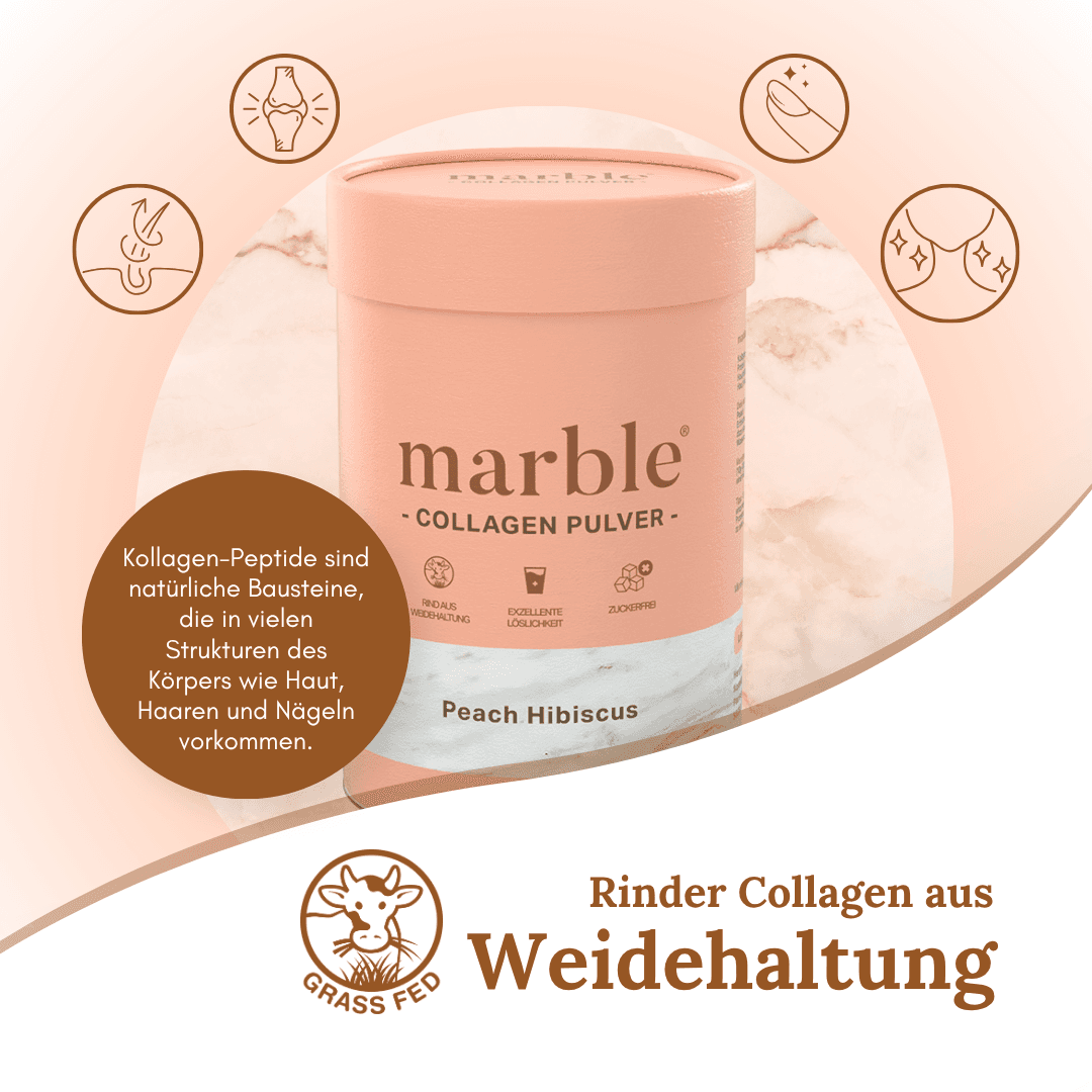 Nahrungsergänzungsmittel: marble Collagen Pulver – Peach Hibiscus