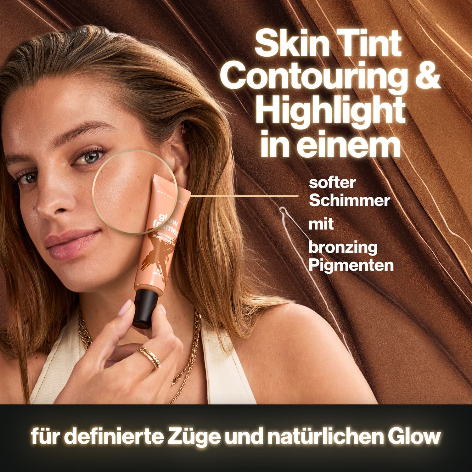Der Max Factor Glow Framer ist Contouring und Highlight in einem, um die natürlichen Gesichtszüge zu betonen. Bronzing Pigmente verleihen dem Teint definierte Konturen und einen frischen, sonnengeküssten Look, während soft schimmernde Pigmente sanft das Gesicht highlighten. Das Produkt verschmilzt nahtlos mit der Haut, lässt sich mühelos verblenden und sorgt so für ein makelloses Finish. Ob als sanfte Kontur oder als glowy Skin Tint getragen, passt sich der Glow Framer jedem Look an. Das Multi-Use-Produkt kann allein, unter dem Make-up, zum Contouring oder zum Abrunden eines glowy Looks verwendet werden. Fünf Farbnuancen bieten für jeden Teint die passende Auswahl. Ganz einfach, in nur einem Schritt aufgetragen – Shape & Glow Your Way!