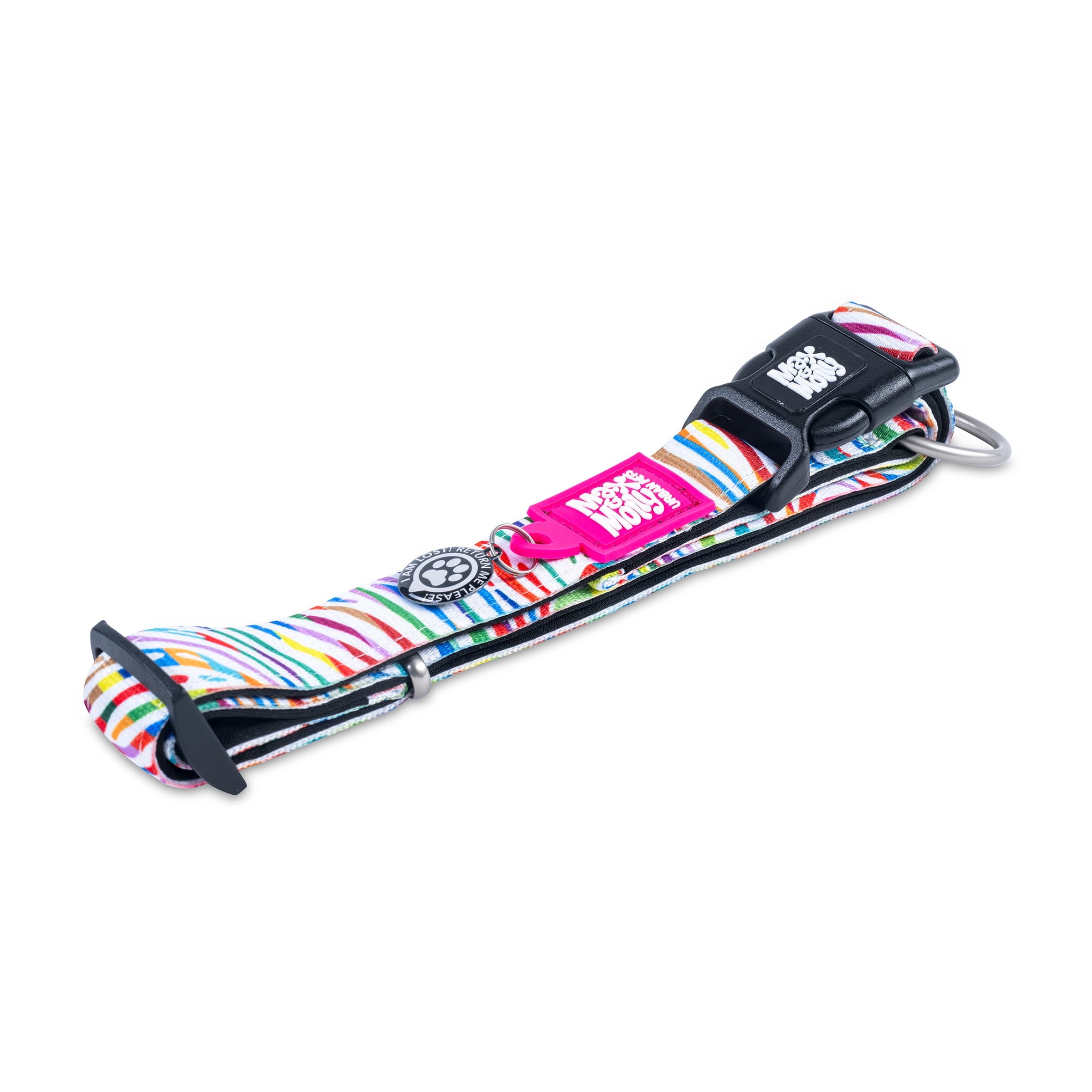 Unsere Original Gear GOTCHA! Smart ID Halsbänder sind der perfekte tägliche Begleiter für deinen Vierbeiner und dich. Mit diesen kreativen Designs verwandelt ihr jeden Bürgersteig in einen Laufsteg und seid mit Sicherheit der Hingucker des Viertels. Unsere Halsbänder punkten aber nicht nur mit einzigartigen Designs, sondern auch in Punkto Sicherheit und Tragekomfort setzen sie ganz neue Maßstäbe.Jedes unserer Halsbänder hat einen eigenen GOTCHA! Anhänger mit einem individuellen QR Code. In unserer exclusiven und kostenlosen GOTCHA! Lost&Found App kannst du ein Profil für deinen Vierbeiner anlegen und so sicher sein, dass der Finder, der den Anhänger scannt, alle nötigen Informationen erhält, um euch zügig wieder zu vereinen. Ausserdem kannst du in der App noch den genauen GEO Standort des Finders sehen, um dich sofort auf den Weg zu machen.Alle Halsbänder bestehen aus einer robusten Polyester-Seite bedruckt mit einzigartigen Designs und dem weichen, schnell trocknenden, anschmiegsamen Neopren auf der Rückseite. Durch die Materialauswahl sind die Halsbäder ultraleicht und für deinen Hund besonders angenehm zu tragen. Außerdem haben sie noch einen Sicherheitsring, der das Ausbüxen während des An- und Ablegens des Halsbandes verhindert. Die Größe ist dank des Schiebers stufenlos einstellbar.Mit den GOTCHA! Smart ID Halsbändern seid ihr somit bestens ausgestattet für euer nächstes gemeinsames Abenteuer.Machinenwäsche 30° C, nicht in den Trockner