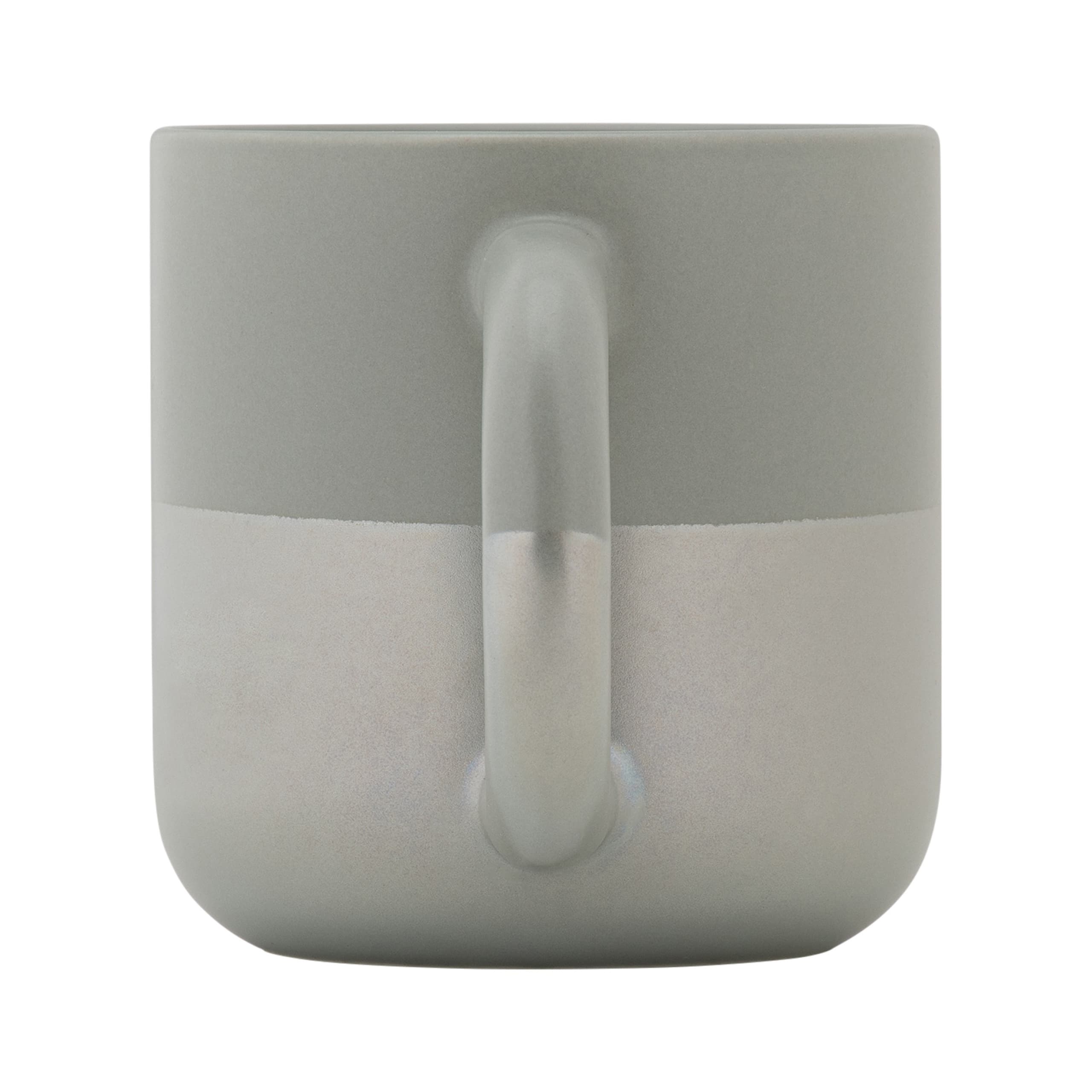 Dieser Becher zeichnet sich durch seine besondere Glasur aus, die matte und glänzende Oberflächen elegant miteinander verbindet. Das robuste Porzellan macht ihn zu einem langlebigen Geschirrstück für den täglichen Gebrauch. Dank seiner praktischen Eigenschaften lässt sich der Becher unkompliziert reinigen und vielseitig verwenden, sei es zum Aufwärmen von Getränken in der Mikrowelle oder zum Abkühlen von Desserts im Gefrierschrank.