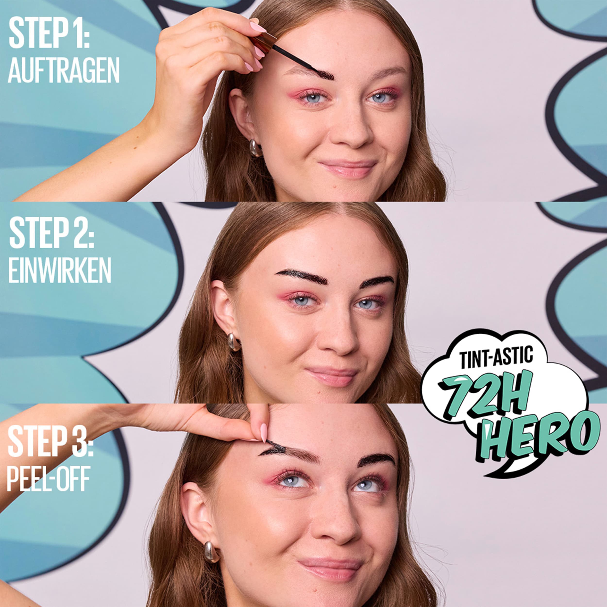 Volle und natürlich definierte Augenbrauen in nur 3 Schritten? Ab sofort mit der Tattoo Brow Augenbrauenfarbe von Maybelline New York möglich! Die innovative Augenbrauenfarbe sorgt für einen bis zu 3 Tage anhaltenden Farbeffekt. Einfach mit dem dünnen Pinsel-Applikator gezielt auf die Augenbrauen auftragen, trocknen lassen und abpeelen – fertig ist der perfekte Brauen-Look! Dank der innovativen Peel-off-Formel werden die Härchen beim Entfernen der Farbe nicht mit gezupft, gleichzeitig bleiben keine Rückstände haften. Je länger die Einwirkzeit, desto intensiver die Tönung. Bereits nach 20 Minuten sind die ersten Ergebnisse zu bewundern.