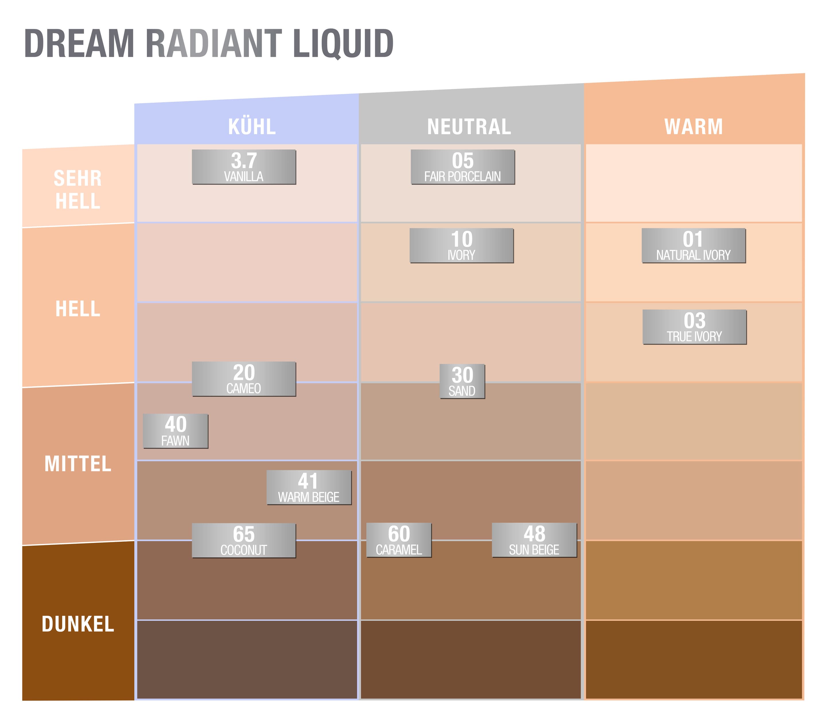 | Inhaltsstoffe | AQUA / WATER • ISODODECANE • CYCLOPENTASILOXANE • DIMETHICONE • GLYCERIN • CYCLOHEXASILOXANE • PEG-9 POLYDIMETHYLSILOXYETHYL DIMETHICONE • BUTYLENE GLYCOL • DIMETHICONE CROSSPOLYMER • DISTEARDIMONIUM HECTORITE • PEG-10 DIMETHICONE • CETYL PEG/PPG-10/1 DIMETHICONE • PHENOXYETHANOL • SODIUM CHLORIDE • POLYGLYCERYL-4 ISOSTEARATE • CAPRYLYL GLYCOL • DISODIUM STEAROYL GLUTAMATE • BUTYROSPERMUM PARKII BUTTER / SHEA BUTTER • PARFUM / FRAGRANCE • ETHYLHEXYL PALMITATE • SILICA • ALUMINUM HYDROXIDE • SILICA DIMETHYL SILYLATE [NANO] / SILICA DIMETHYL SILYLATE • PROPYLENE GLYCOL • ALPHA-ISOMETHYL IONONE • LINALOOL • CITRONELLOL • METHICONE • SOLUBLE COLLAGEN • SODIUM HYALURONATE • HEXYLENE GLYCOL • PENTAERYTHRITYL TETRA-DI-T-BUTYL HYDROXYHYDROCINNAMATE • TRISODIUM EDTA • POTASSIUM SORBATE • CITRIC ACID ● [+/- MAY CONTAIN: CI 77891 / TITANIUM DIOXIDE • CI 77491, CI 77492, CI 77499 / IRON OXIDES • CI 77007 / ULTRAMARINES • CI 15985 / YELLOW 6 LAKE]. (F.I.L. D237918/1). |