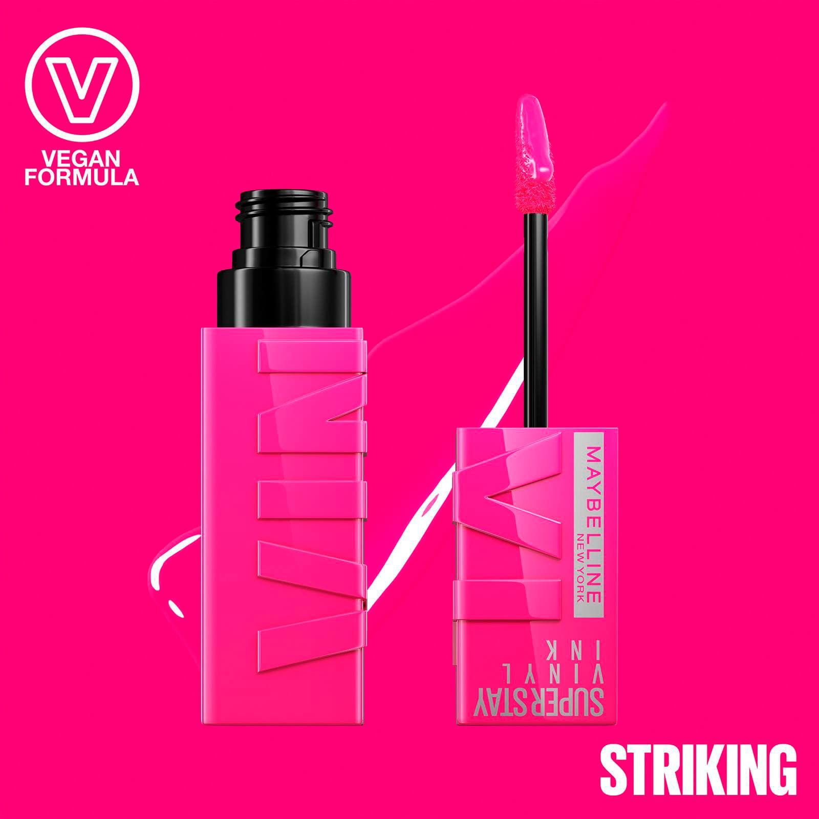 Der flüssige Maybelline New York Super Stay Vinyl Ink Lippenstift aus der Pink Mashup-Reihe kreiert ein sofort glänzendes Vinyl-Finish mit intensiver Farbe und bis zu 16H Halt - ganz ohne zu verschmieren oder zu verblassen! Der Maybelline New York Super Stay Vinyl Ink ist ein absoluter Game Changer! Der flüssige Lippenstift sorgt für intensive Farbe und ein Vinyl-Finish auf den Lippen. Die vegane*, langanhaltende Formel hält bis zu 16 Stunden und verhindert Verschmieren und Verblassen. Hochpigmentierte, elektrisierende Pinktöne den ganzen Tag – werde zum absoluten Trendsetter mit dem Vinyl Lippen-Look. *Ohne Inhaltsstoffe tierischen Ursprungs.