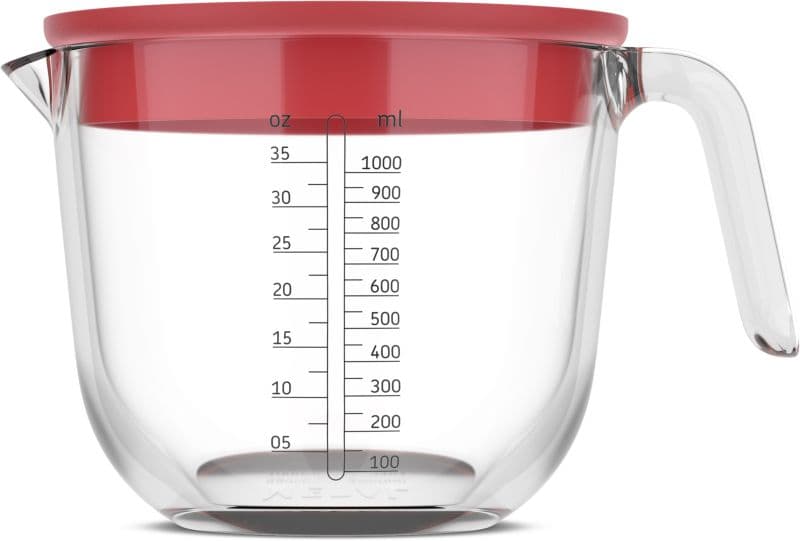 Der Messbecher mit Deckel ist ideal zum genauen Abmessen von Flüssigkeiten und Zutaten. Hergestellt aus hitzebeständigem Glas.